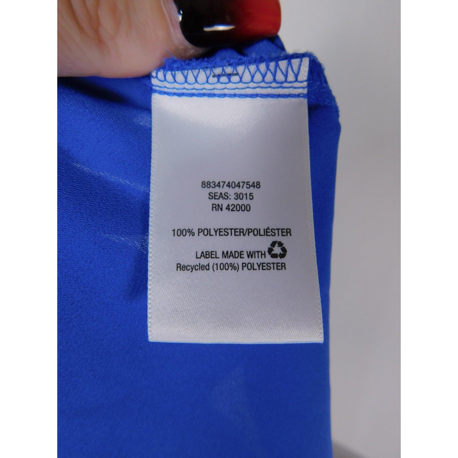 Cast crisp modern-mage energy in this pre-owned Attention women’s S bright-blue sleeveless blouse — 100% polyester lightweight weave with bold black & white geometric woven trim across chest and hidden button placket (top button visible). Round neck, machine-washable, perfect for office altars, coven meetings, or layered witchy workwear.