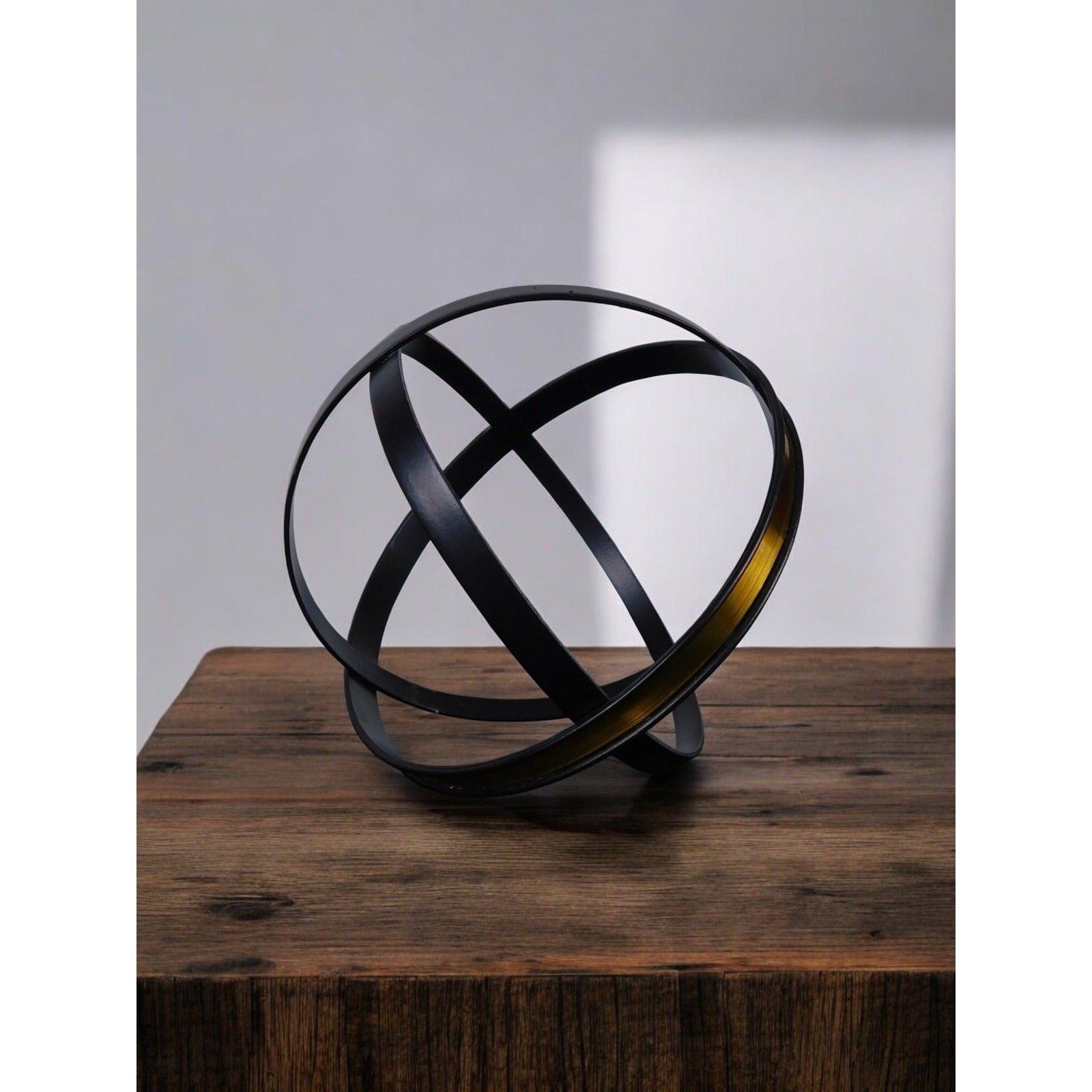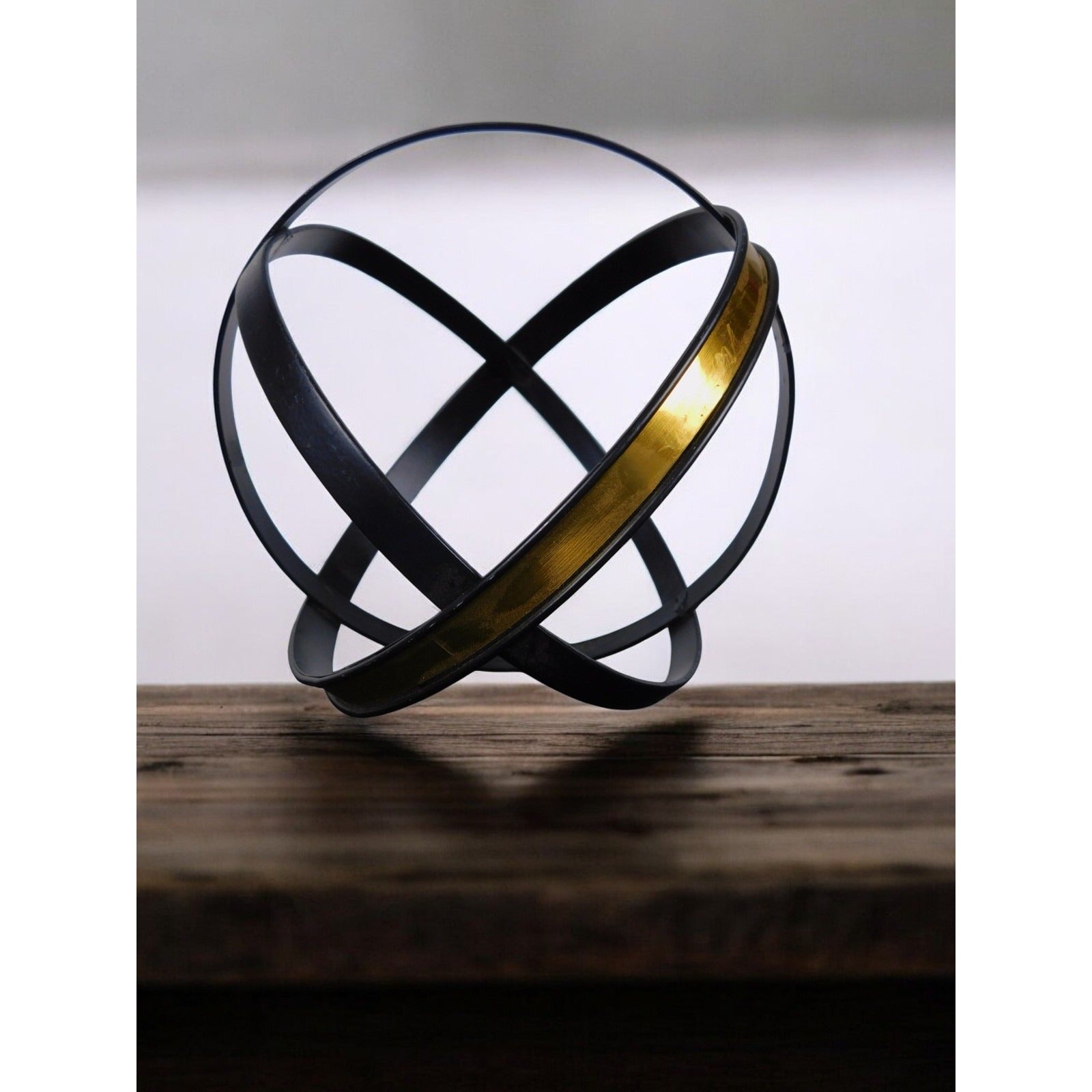 Black Gold Armillary Orb 8" Metal Geometric Sculpture