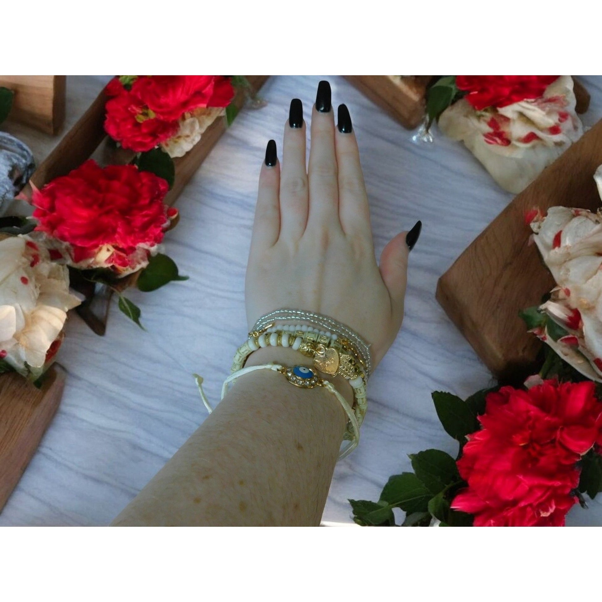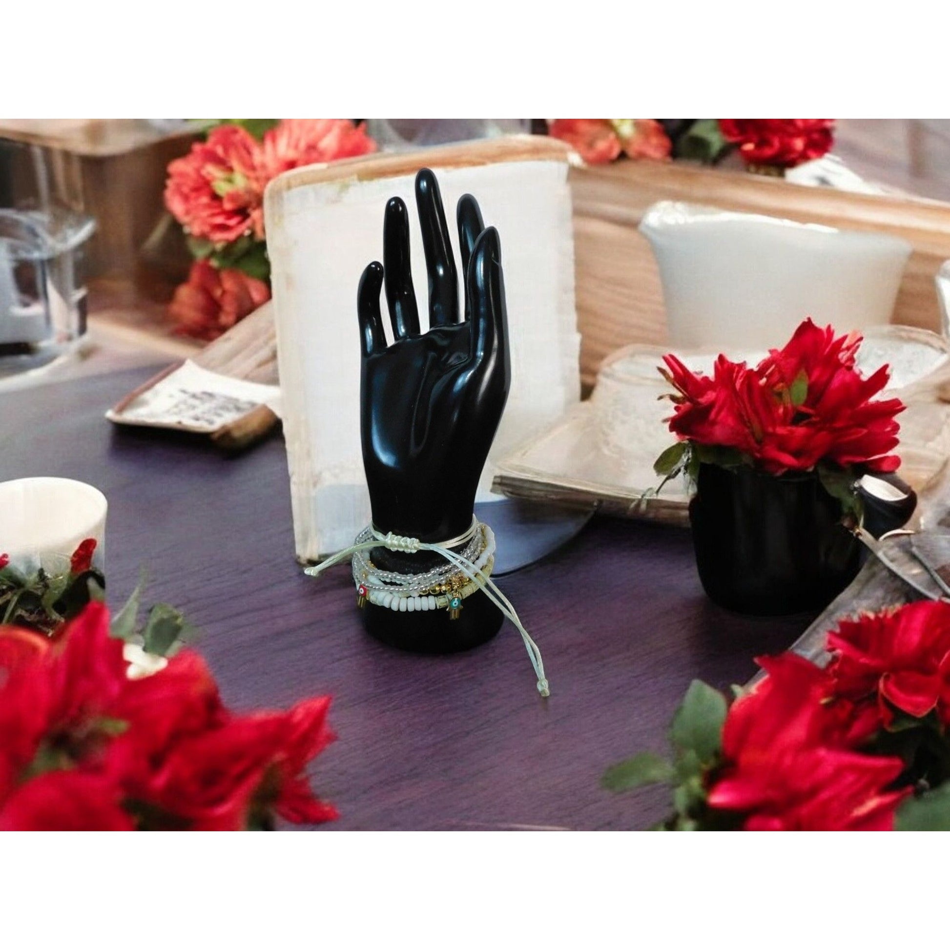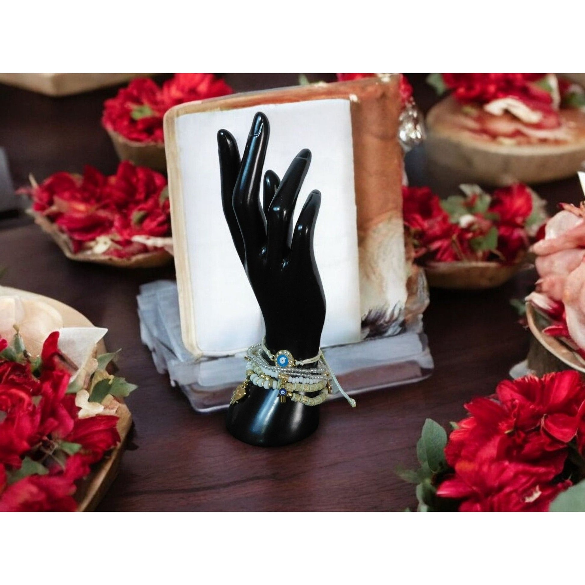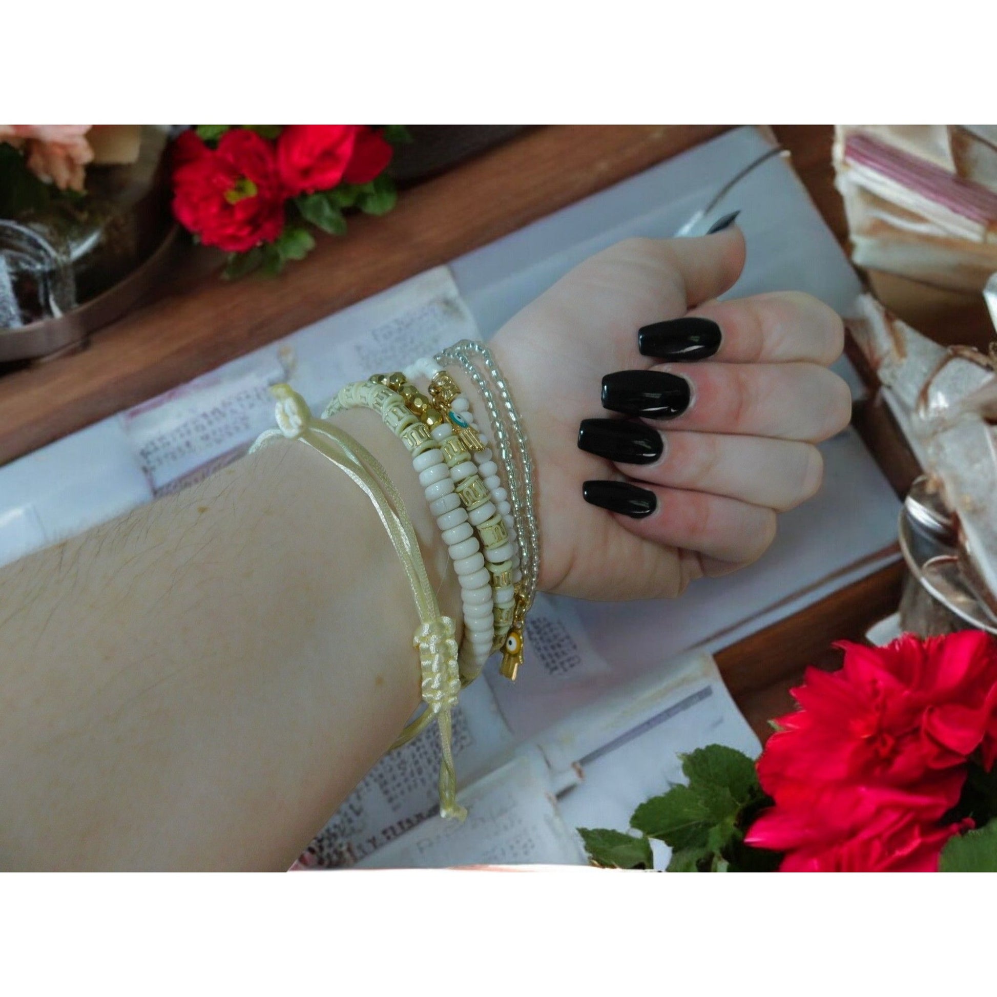 Boho Evil Eye Hamsa Beaded Bracelet Set - Adjustable - New - Witchcore Ethereal