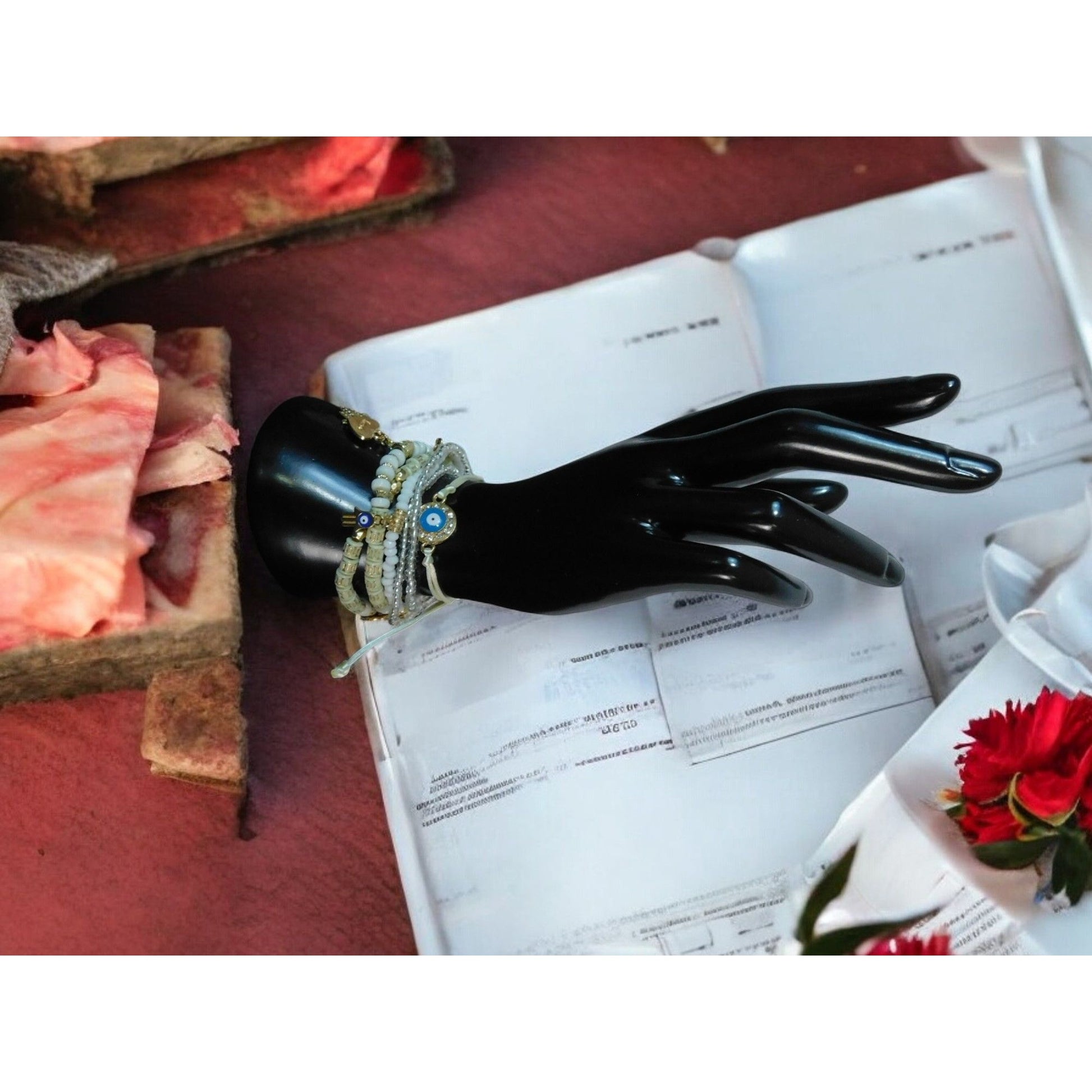 Ward envy in layered style with this NWT boho Evil Eye & Hamsa beaded bracelet set—colorful beads shimmer with nazar & hand charms for luck & protection. Adjustable drawstring closure fits 6–9" wrists; stack or mix for daily warding. Ethereal & Elemental essential. The Witches Quest curation.