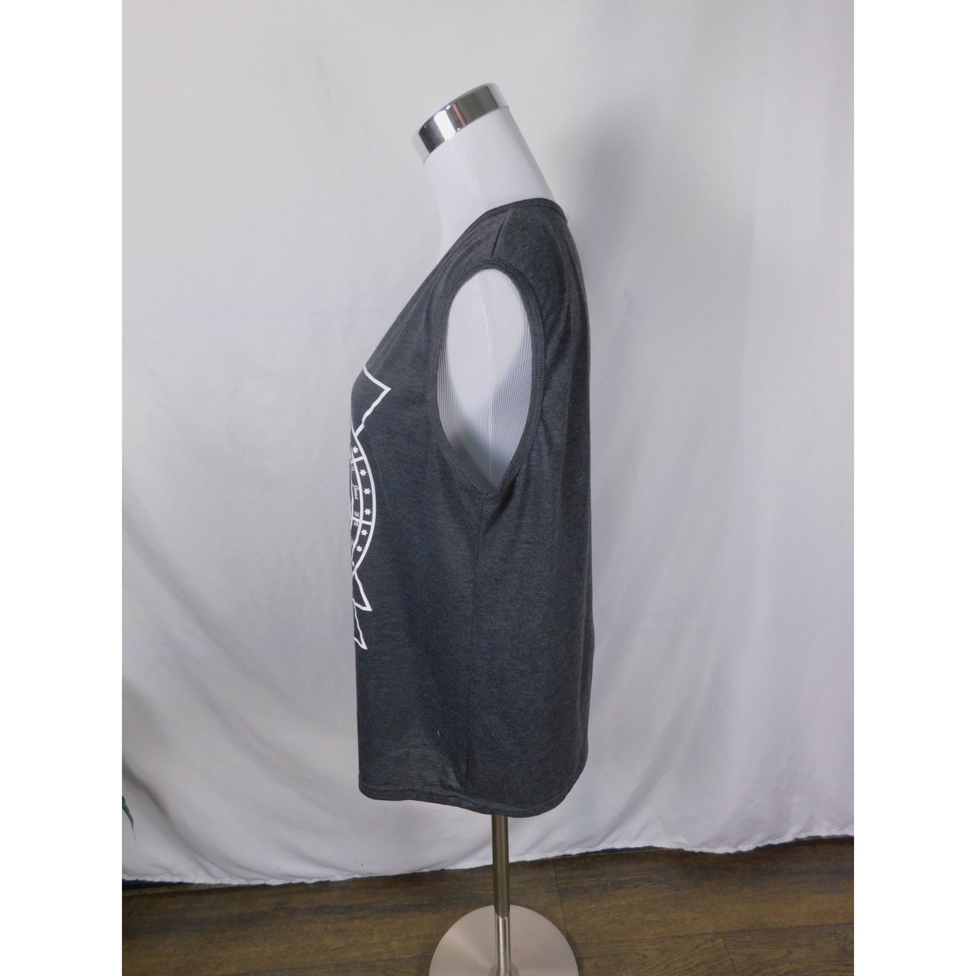 Step into alignment with the cosmos in this charcoal gray sleeveless tank featuring an intricate white mandala design framed by moon phases and celestial lines. A unisex, lightweight layer that flows easily into ritual wear, yoga sessions, or moonlit adventures. Looks equally great styled with jeans, joggers, or under a denim vest.
