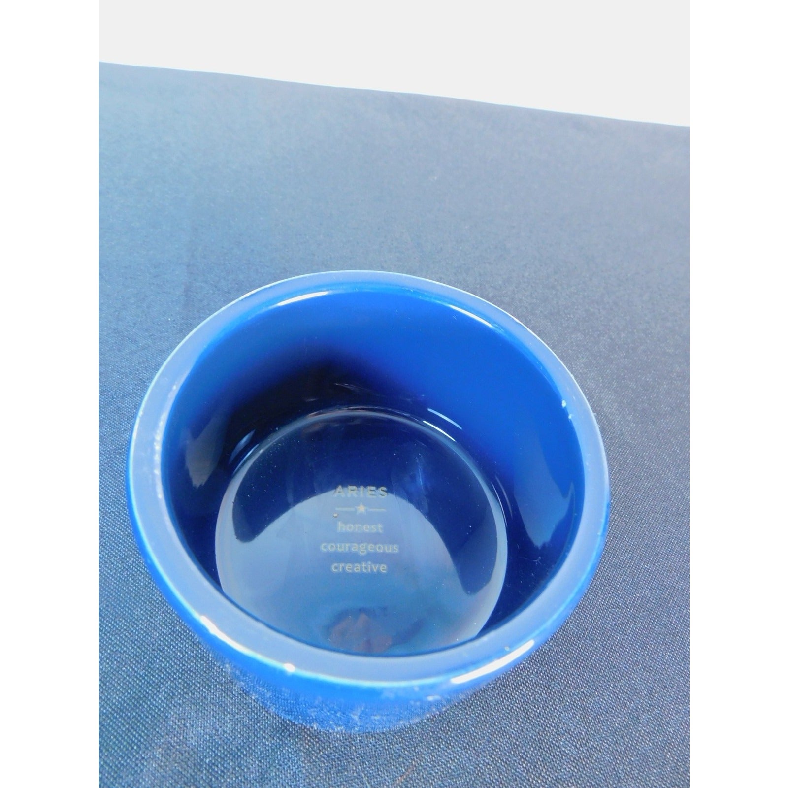 Features a glossy blue finish with gold ram Aries zodiac design and celestial motif on the removable lid.
