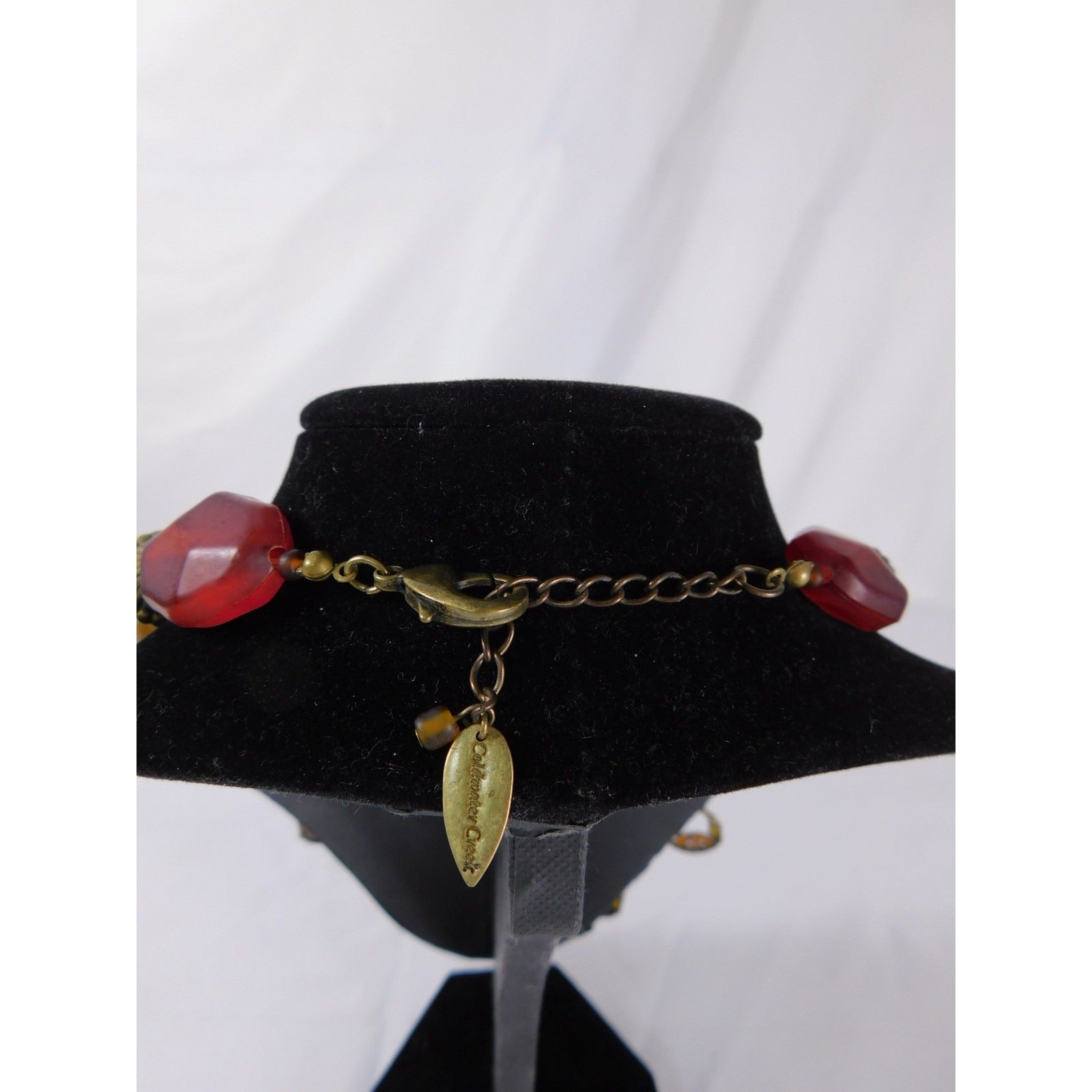Coldwater Creek Necklace Statement Red Gold Beaded Multi Strand Mixed Media Boho