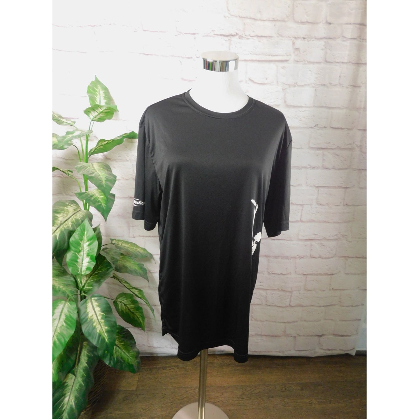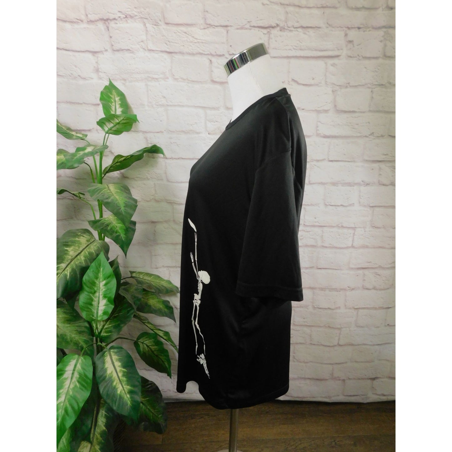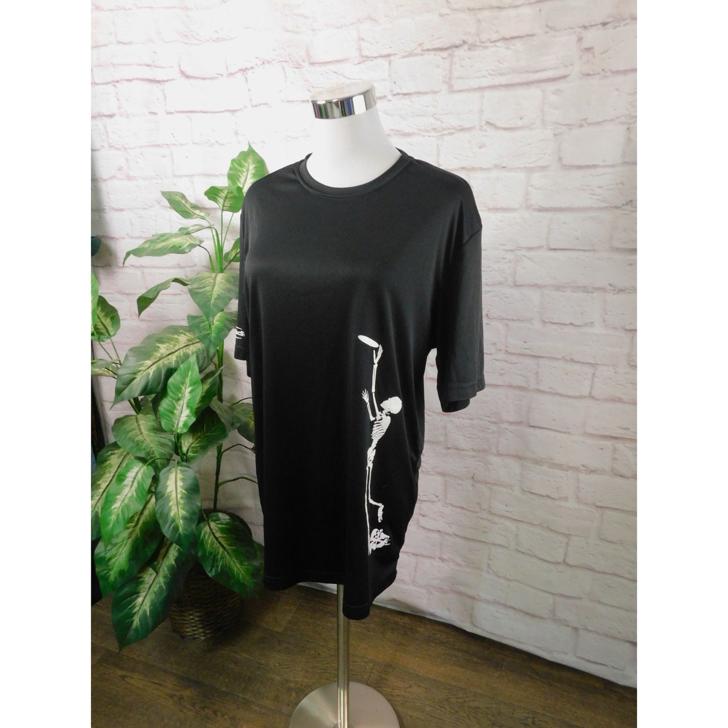 T-shirt noir unisexe avec squelette jouant au disque Disc Store, taille M