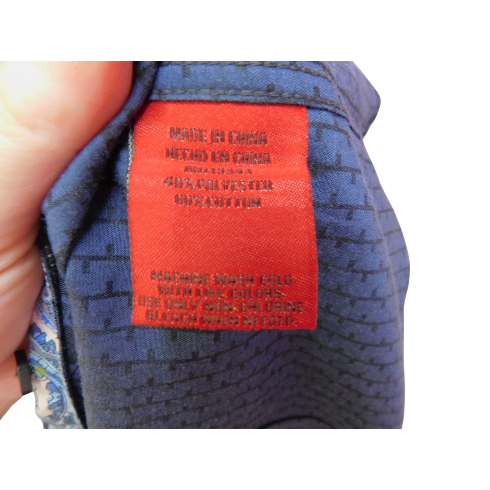 Channel midnight-ritual elegance in this pre-owned Elie Milano men’s Small navy long-sleeve shirt — 60% polyester 40% cotton blend feels soft and structured, modern tailored fit, rich deep navy perfect for formal circles, dark-academia looks, or everyday witch menswear. Machine wash.