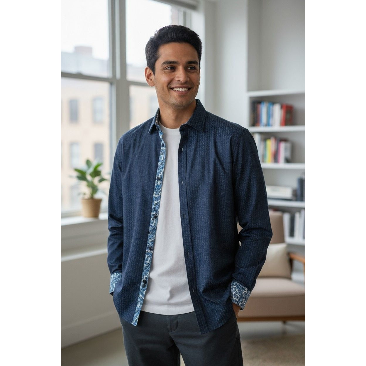 Elie Milano Navy Modern Fit Shirt S - Mens Long Sleeve - Excellent