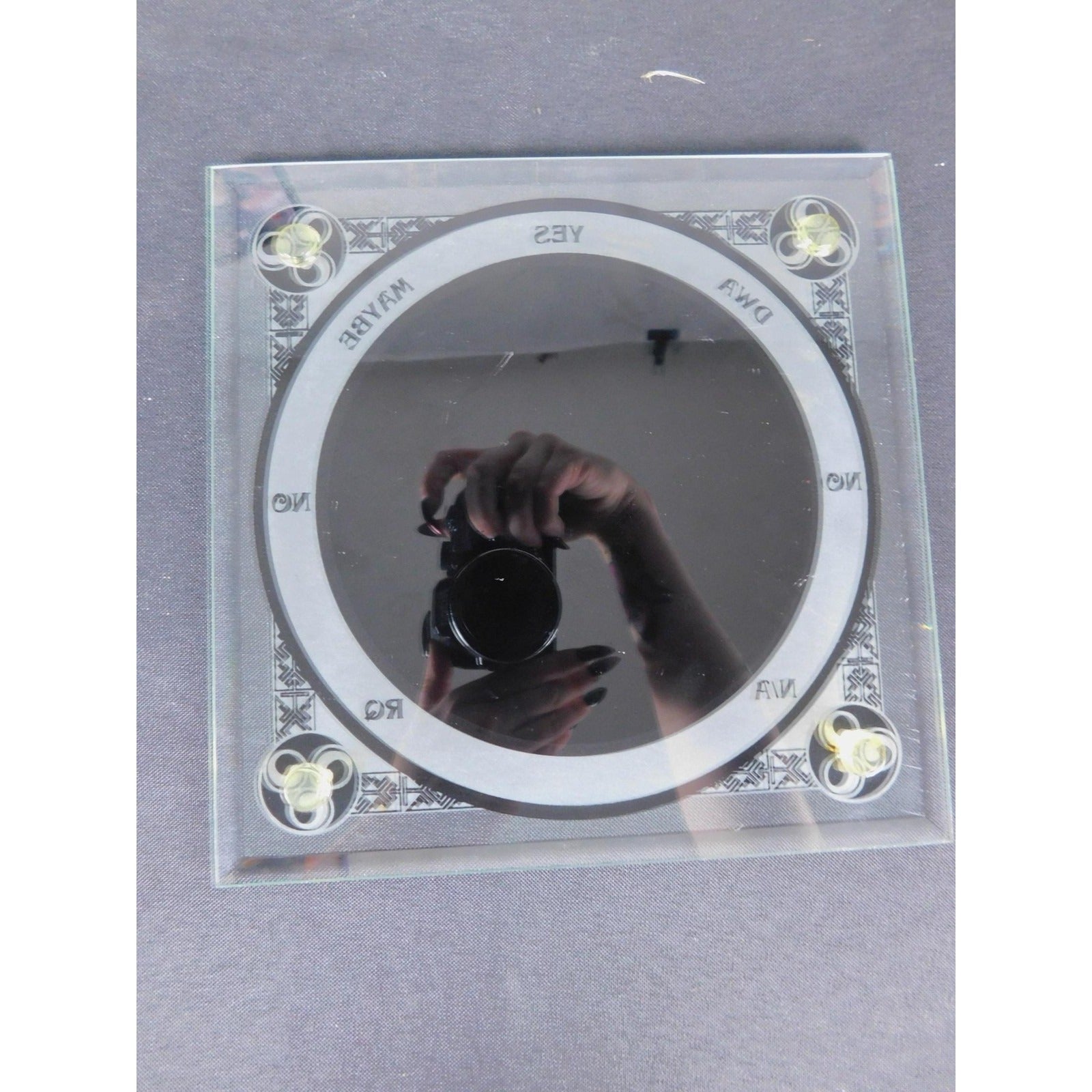 Divine fates with this pre-owned 8" square glass pendulum board—etched pentagram center radiates with directional sigils (Yes/No/Maybe) in antique silver filigree, framed by interlocking runes on smoky obsidian base. Velvet pouch included; subtle etch wear enhances ritual depth for coven queries or solitary spells. Ethereal & Elemental oracle. The Witches Quest curation.