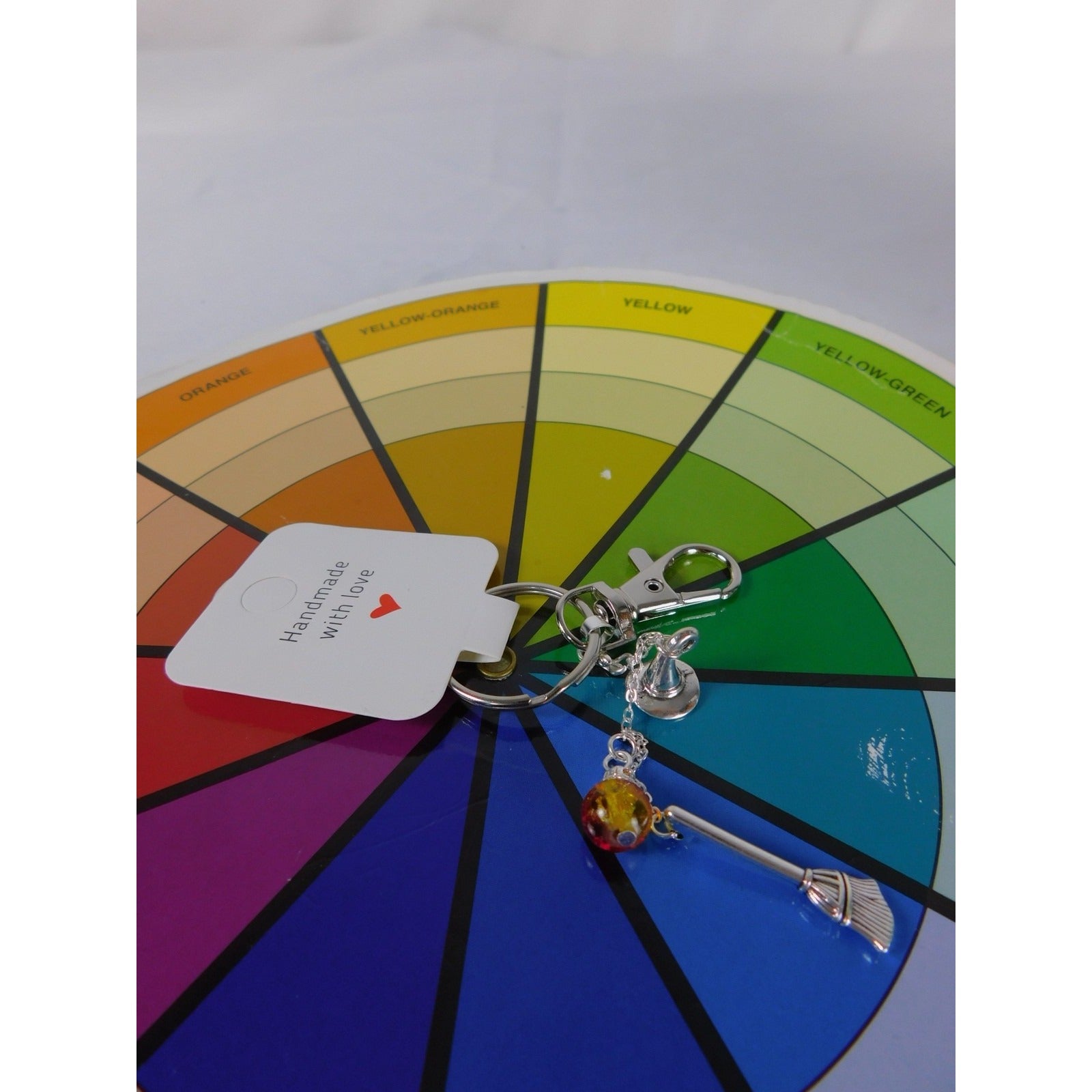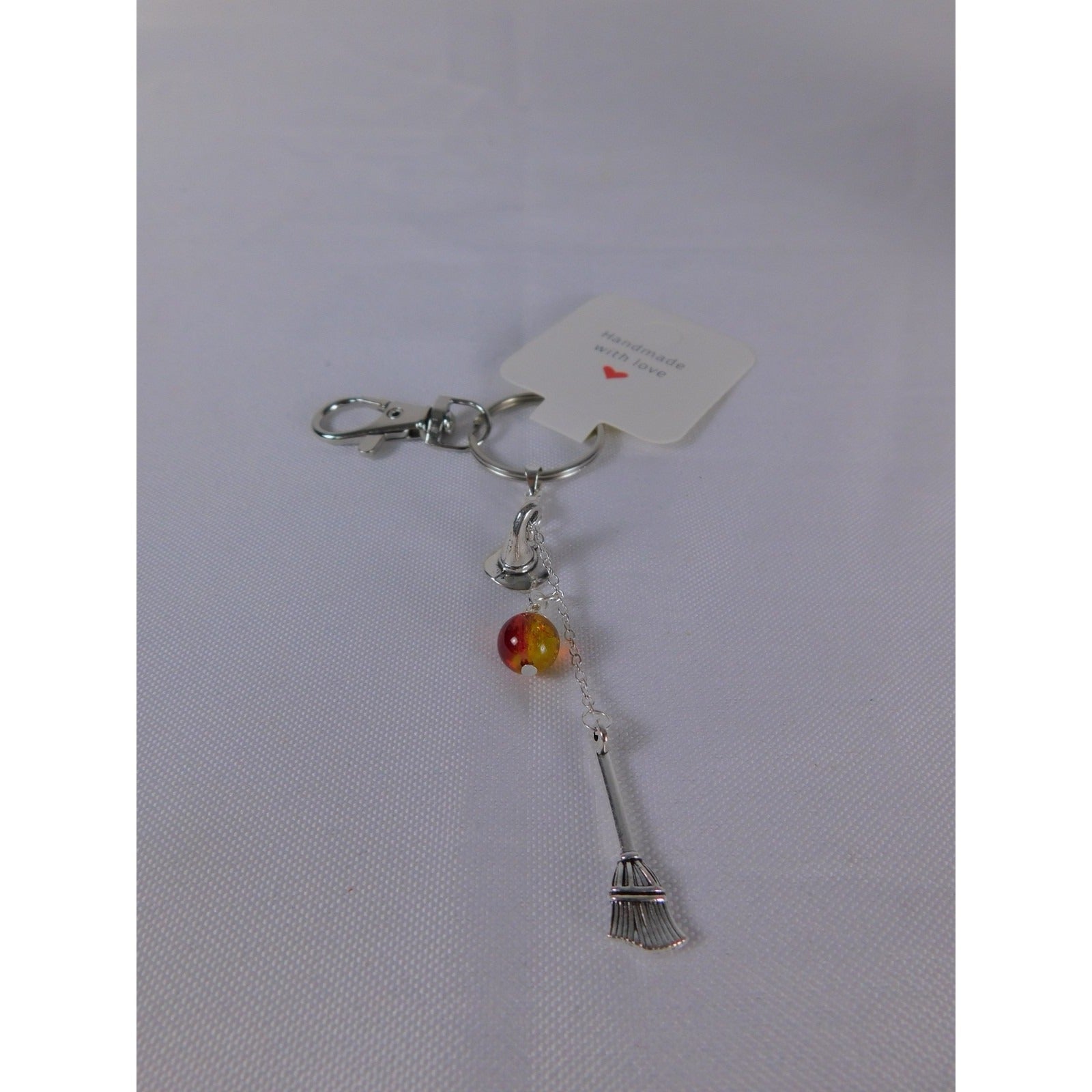 Handmade Witch Hat Broom Keychain Yellow Red Glass Bead Halloween Gift Charm