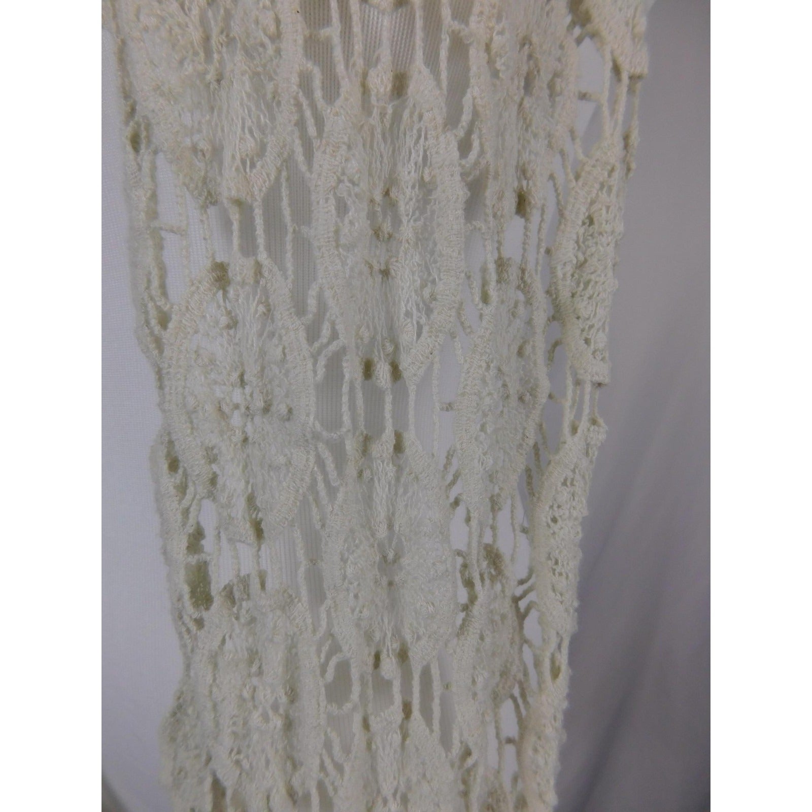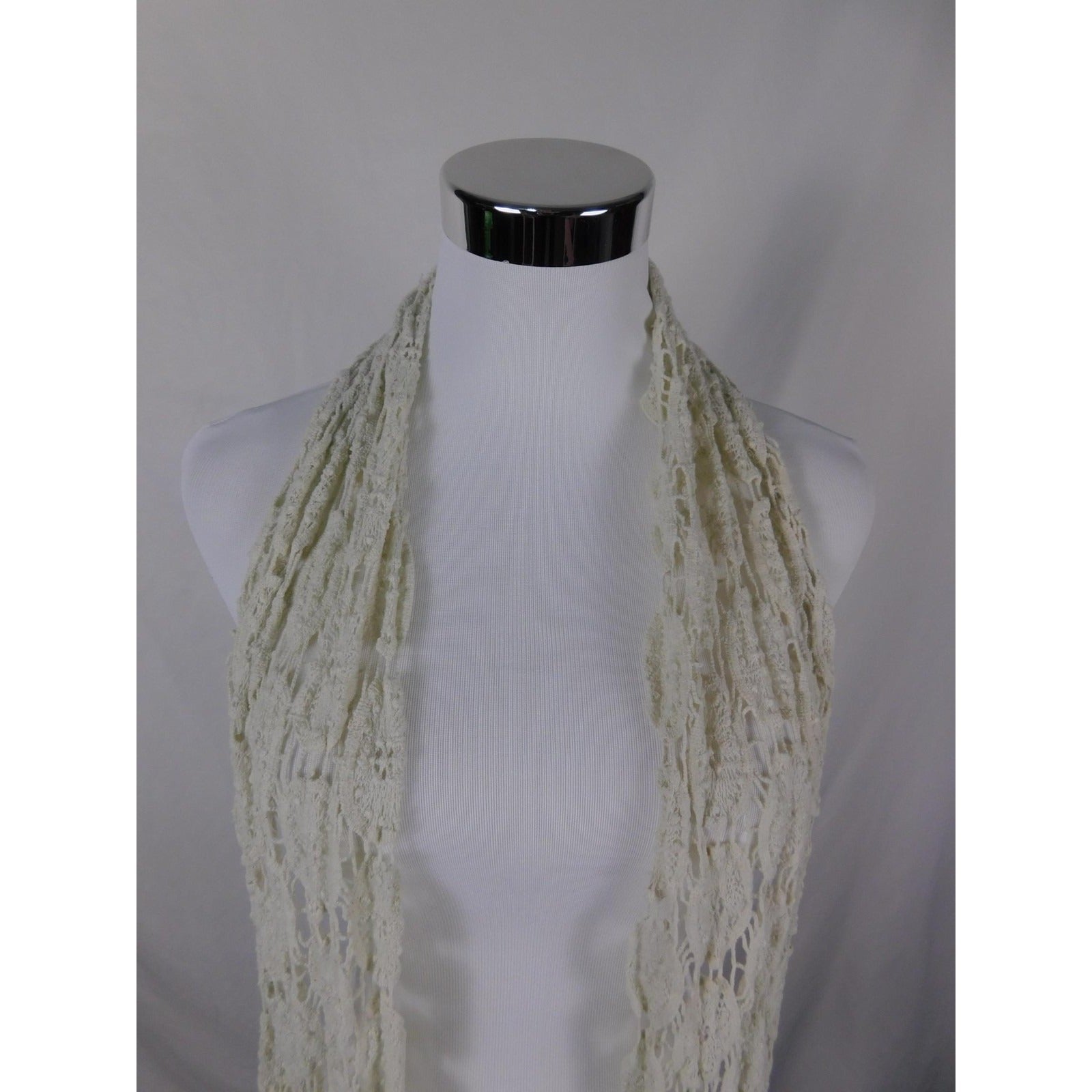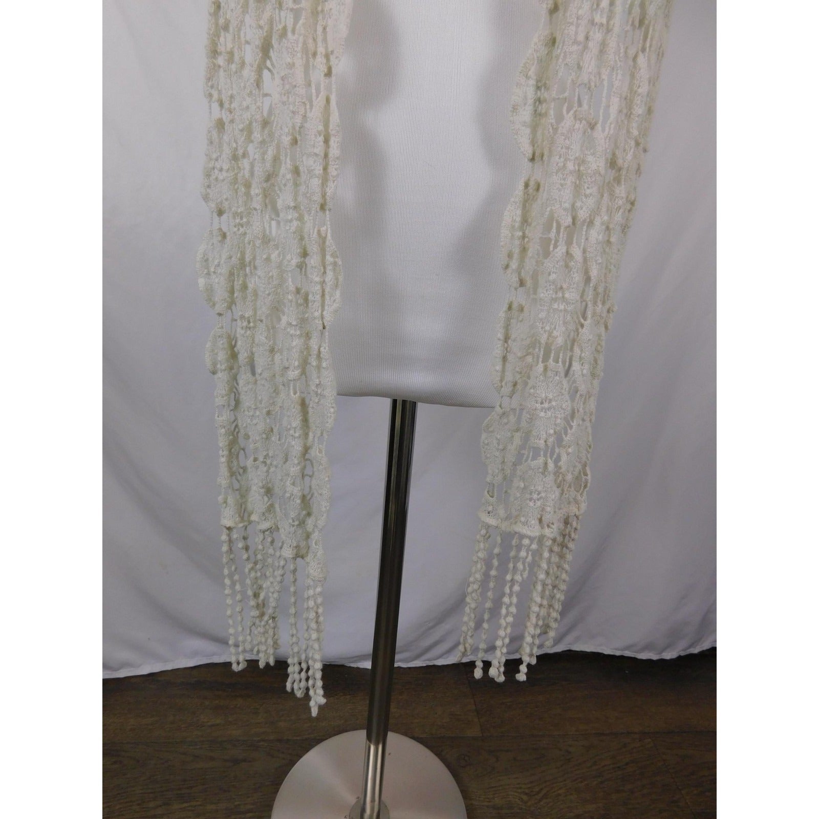 Ivory Lace Fringe Crochet Boho Shawl Wrap OS