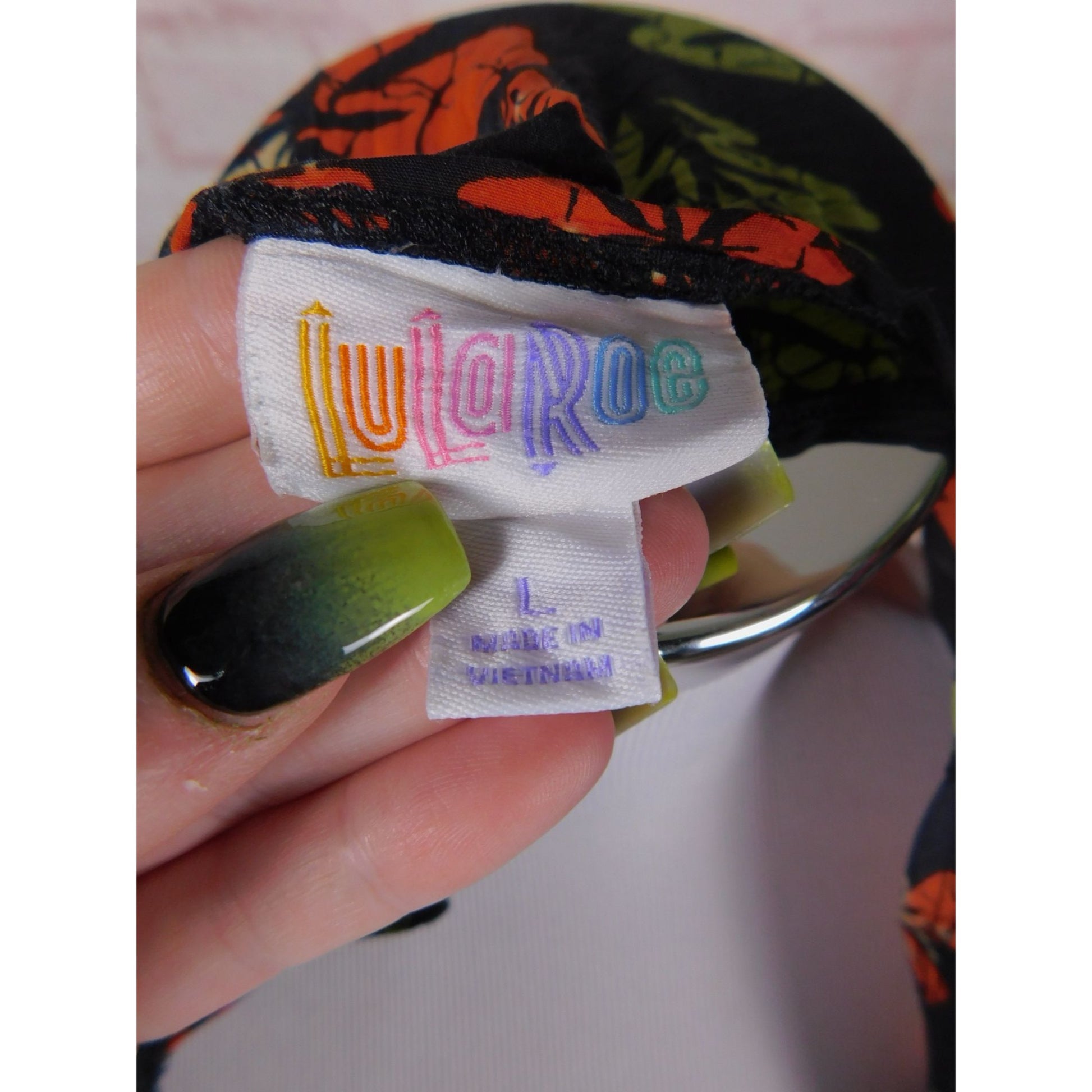 Flow like midnight gardens in this pre-owned LuLaRoe size Large navy floral duster vest — vibrant orange & green blooms on feather-light 100% polyester, open-front sleeveless silhouette cascades to 44" long. Perfect boho witch layering over dresses, leggings, or ritual wear for instant forest-priestess energy.