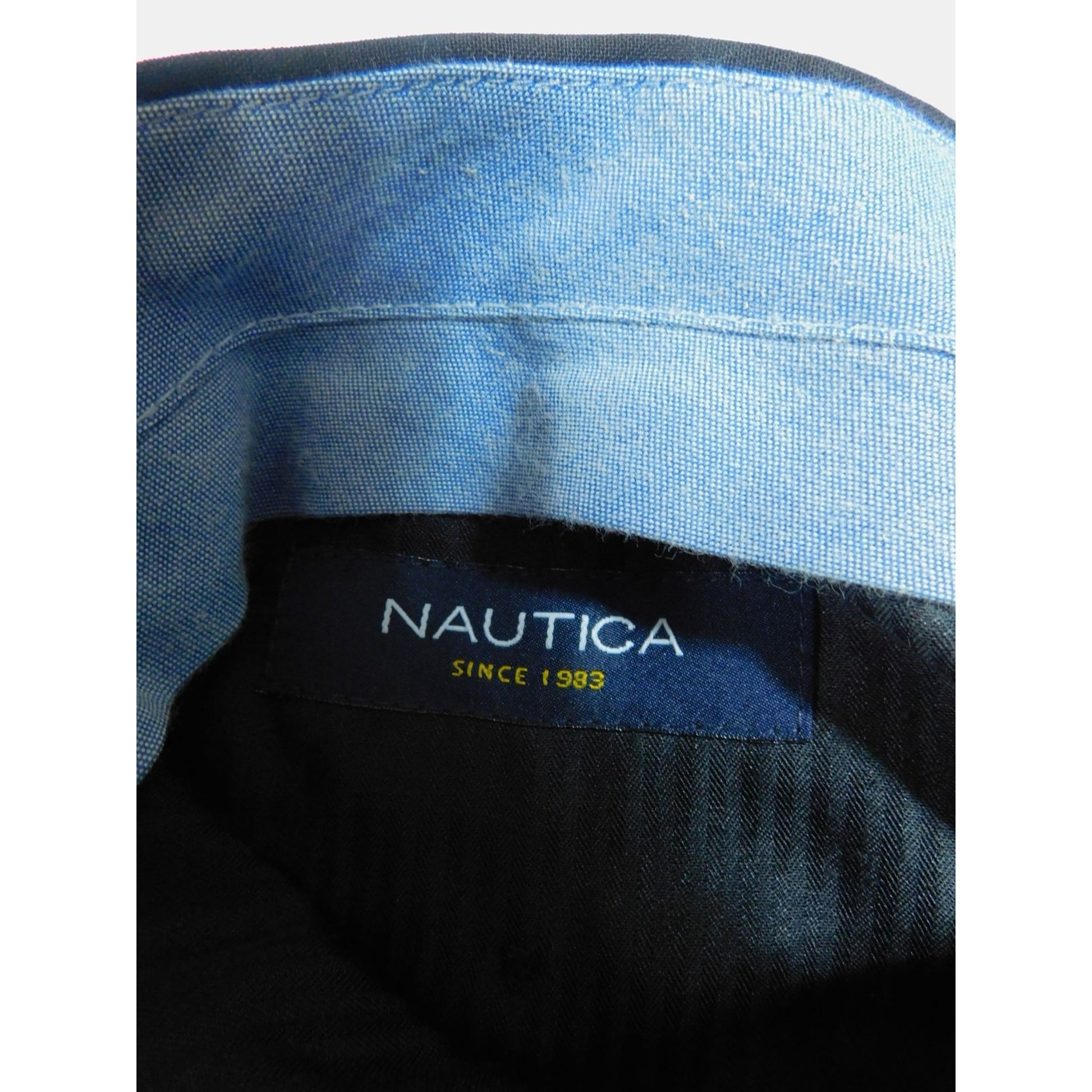 Channel midnight-ritual sophistication in these pre-owned Nautica 36x30 black wool-blend dress pants — 60% wool, 39% polyester, 1% spandex gives structure with just enough stretch, pleated front, cuffed hems, buttoned back pockets, belt loops. Dry-clean only, made in Vietnam. Perfect for formal coven gatherings, dark-academia looks, or everyday tailored witch menswear.