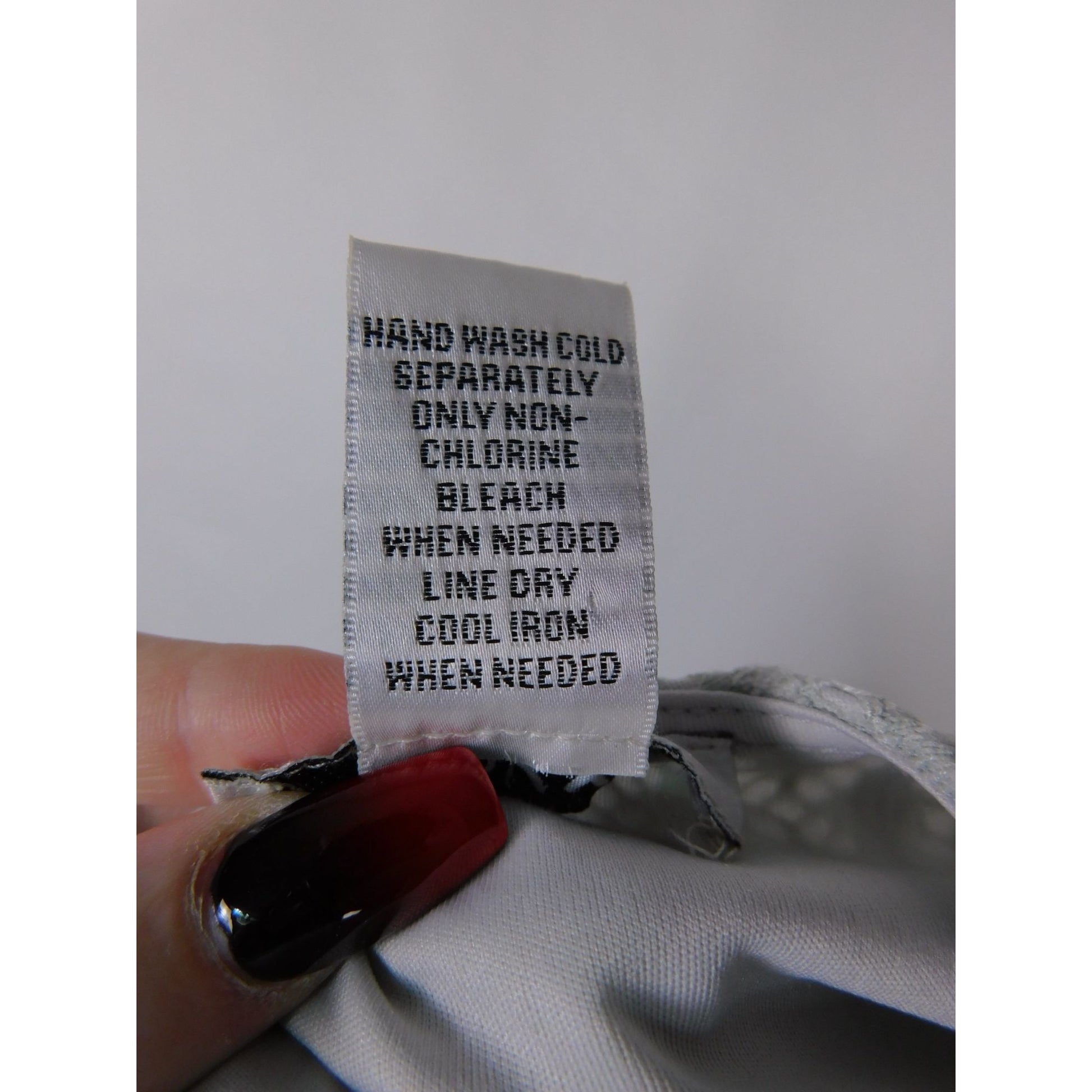 Measurements: approx 16–18" pit-to-pit (stretch), 13–15" waist (stretch), 34" long