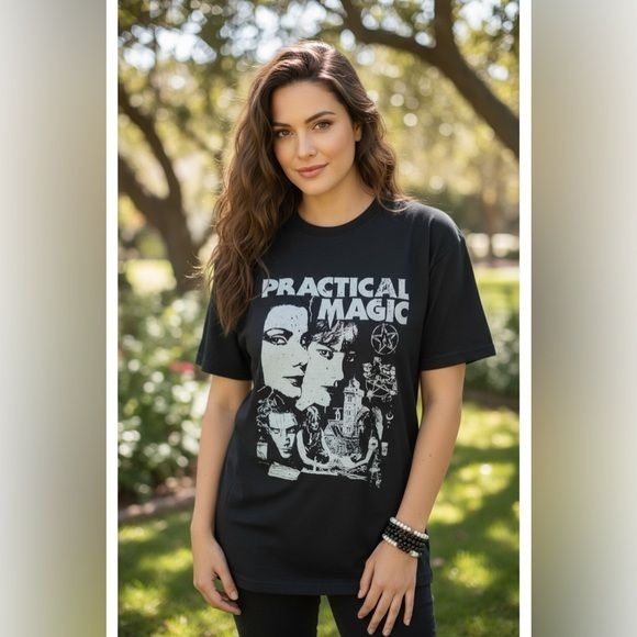 Channel movie magic with this brand new Practical Magic black graphic tee, featuring witchcraft motifs from the iconic 90s film for enchanted style. Women’s large (~40–42-inch bust, ~26-inch length), true to fit. Brand new, no flaws. Pair with jeans and a pentacle necklace for Witchcore vibes. Ships swiftly from The Witch’s Quest. Explore more charmed styles at