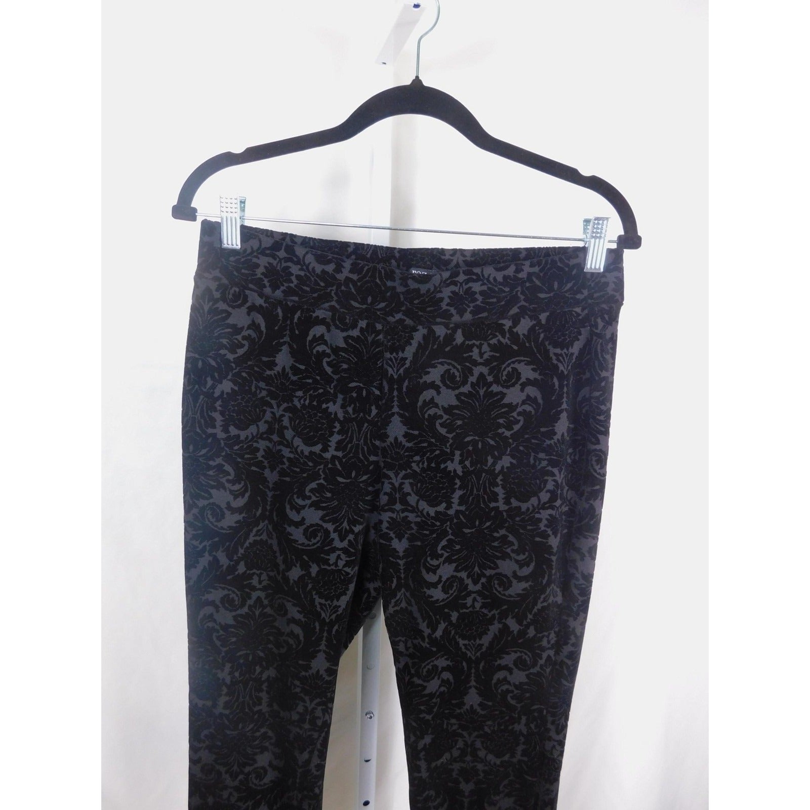 Roz & Ali Pants Womens Medium Black Flocked Velvet Damask Gothic Witchy
