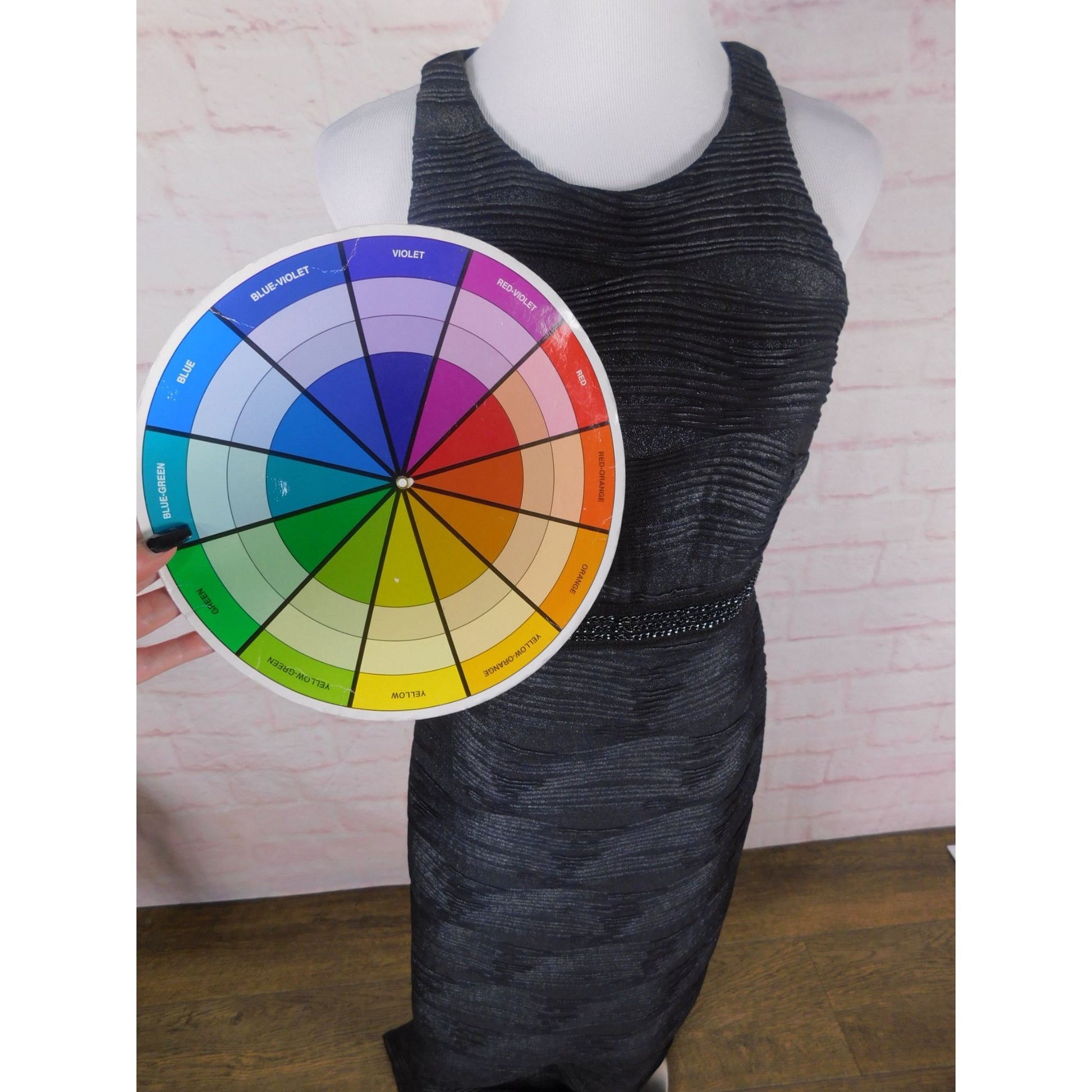 Glide through shadow rites in this pre-owned Scarlett size 6 black textured gown (58" long, 17" bust, 14" waist, 18" hips)—sleeveless bodice with beaded waistband glimmers like starlit runes, keyhole back & rear slit whisper Victorian intrigue. Fully lined, subtle shimmer; flawless for coven galas. Elegant & High-Drama silhouette. The Witches Quest curation.