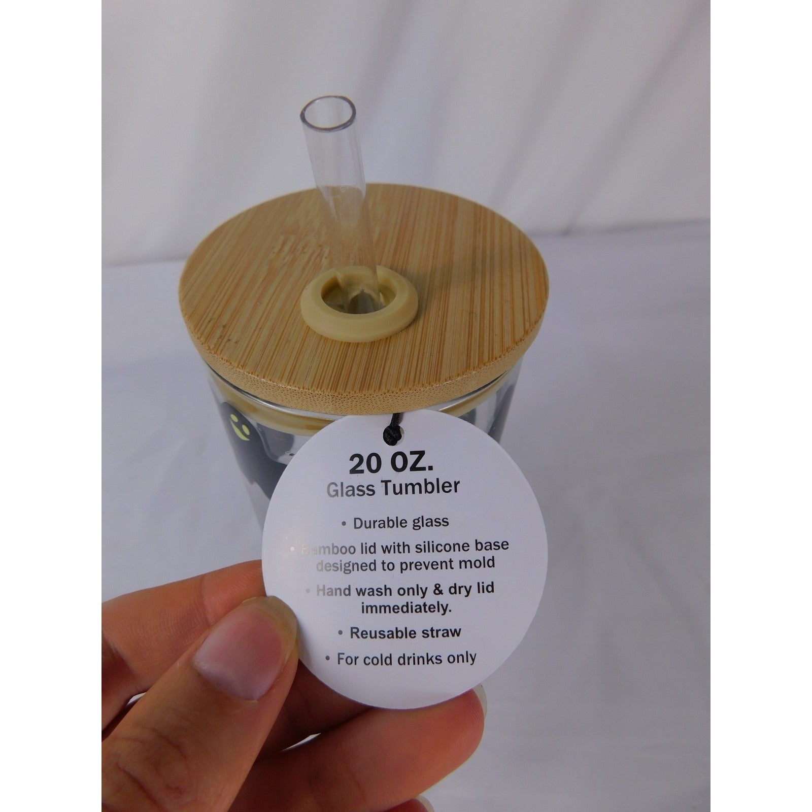 Reusable clear glass straw included