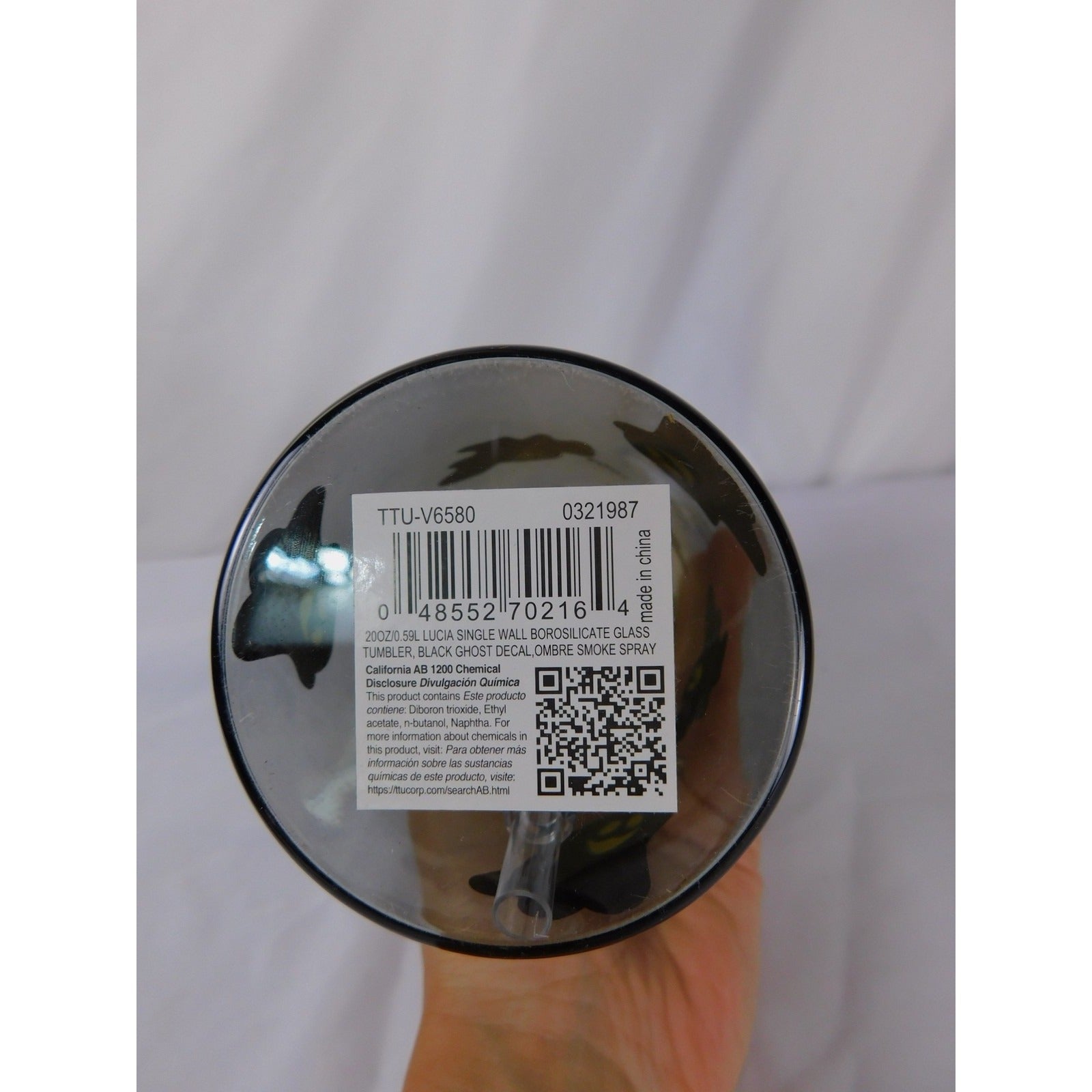 Studio TU Glass Tumbler 20 oz Ghost Halloween Smoke Ombre Reusable Straw Bamboo Lid