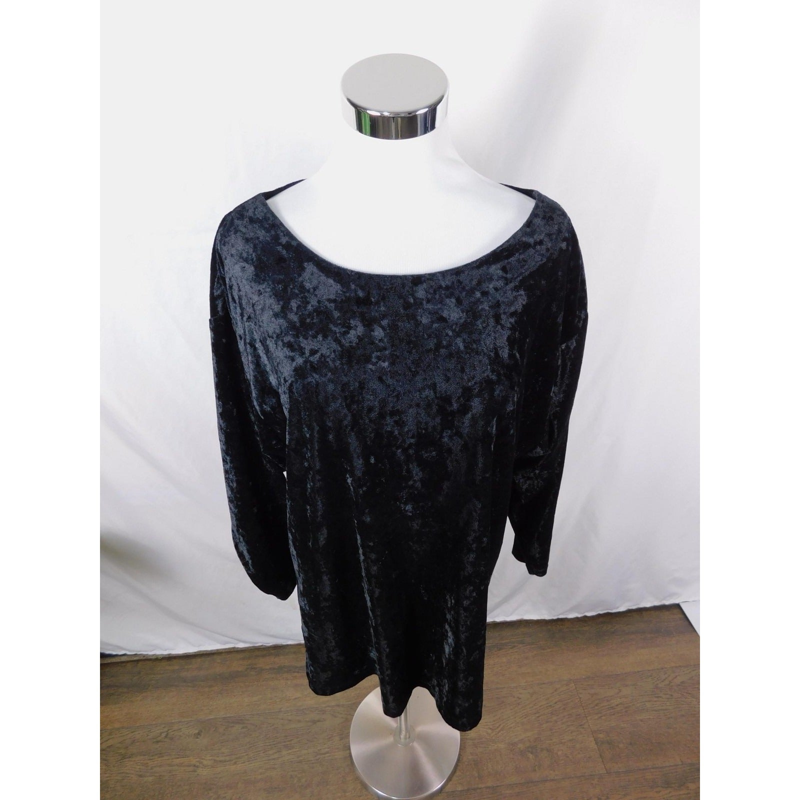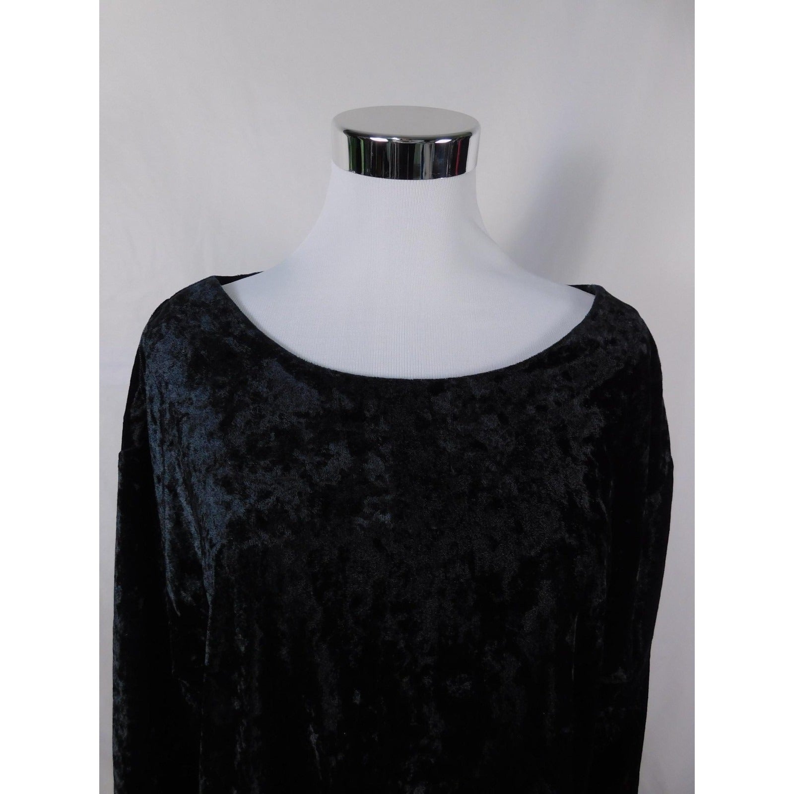 The Lounge Collection Shirt Womens Large Black Crushed Velvet Boatneck Velour