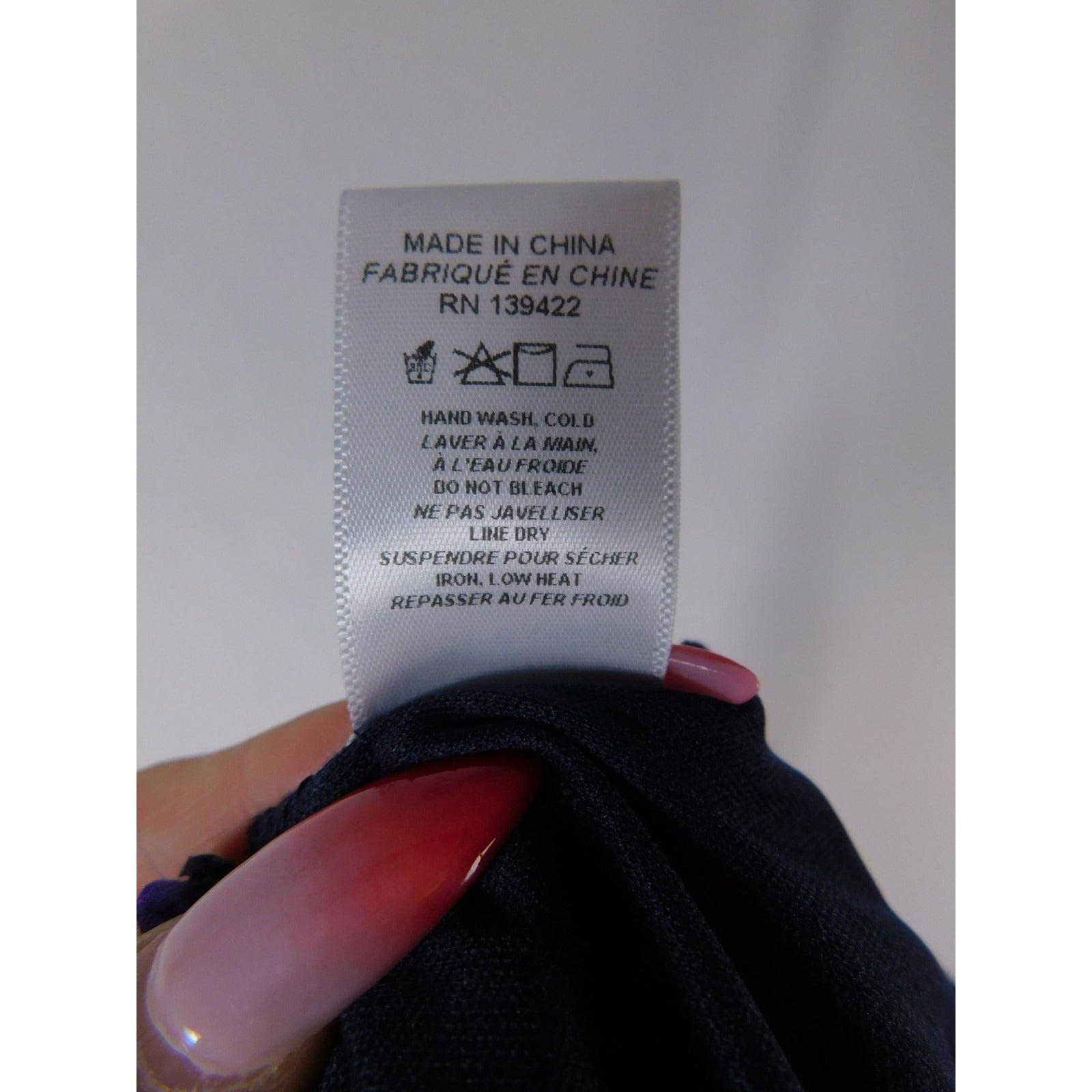 Care per tag: Hand wash cold; do not bleach; line dry; iron on low heat
