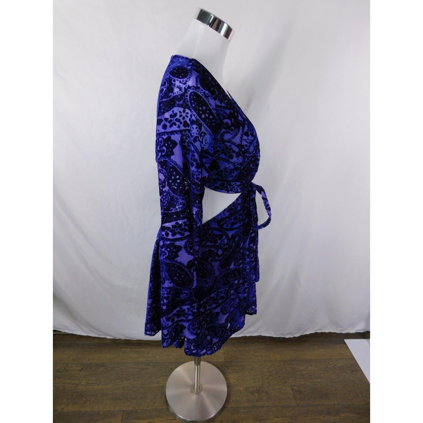 Tobi Dress Womens Small Blue Purple Velvet Burnout Wrap Mini Long Sleeve Cutout