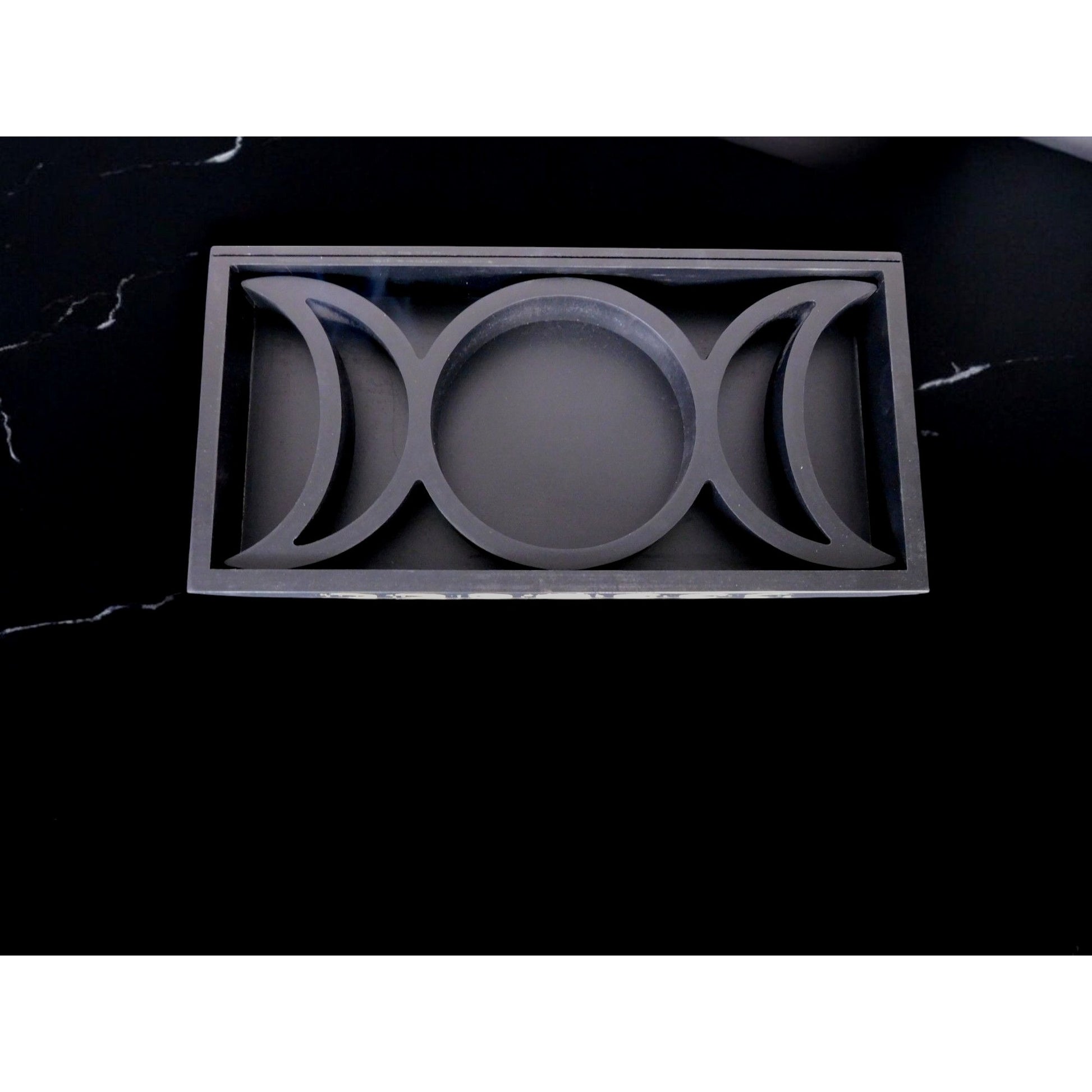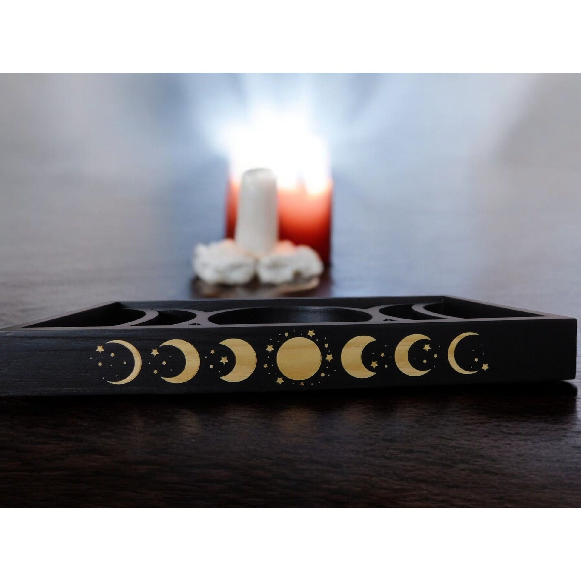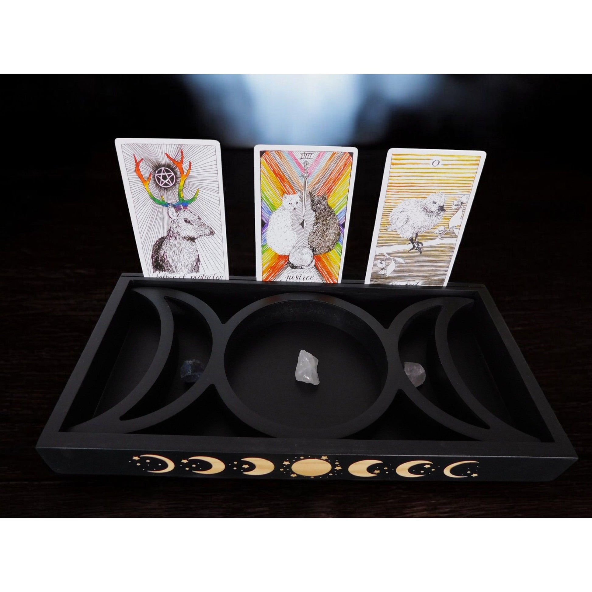 Mystical Moon Phase Tarot Card & Crystal Display Holder Handcrafted Wooden Altar Organizer