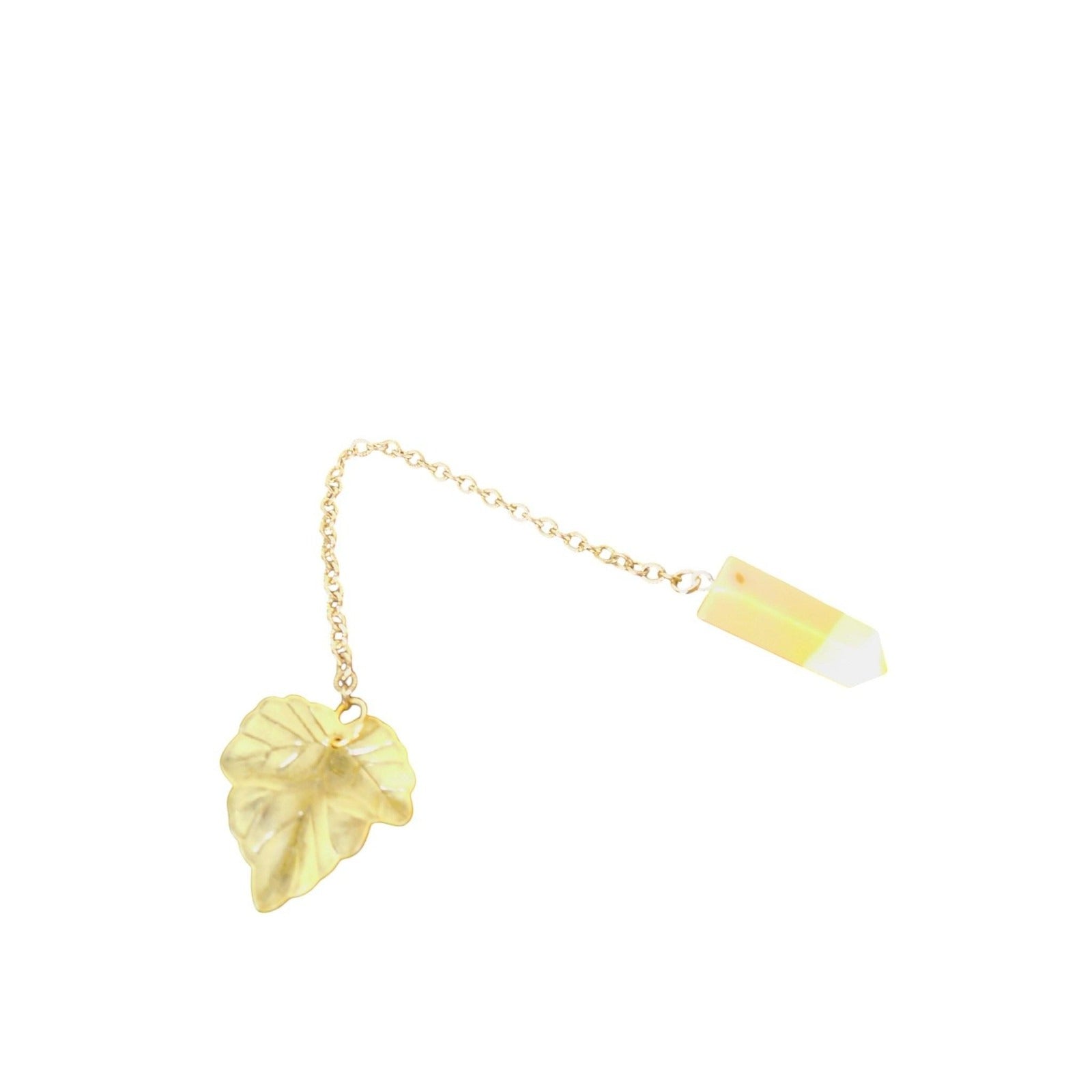 Material: Wood composite board, printed disc, metal chain with resin crystal and leaf charm