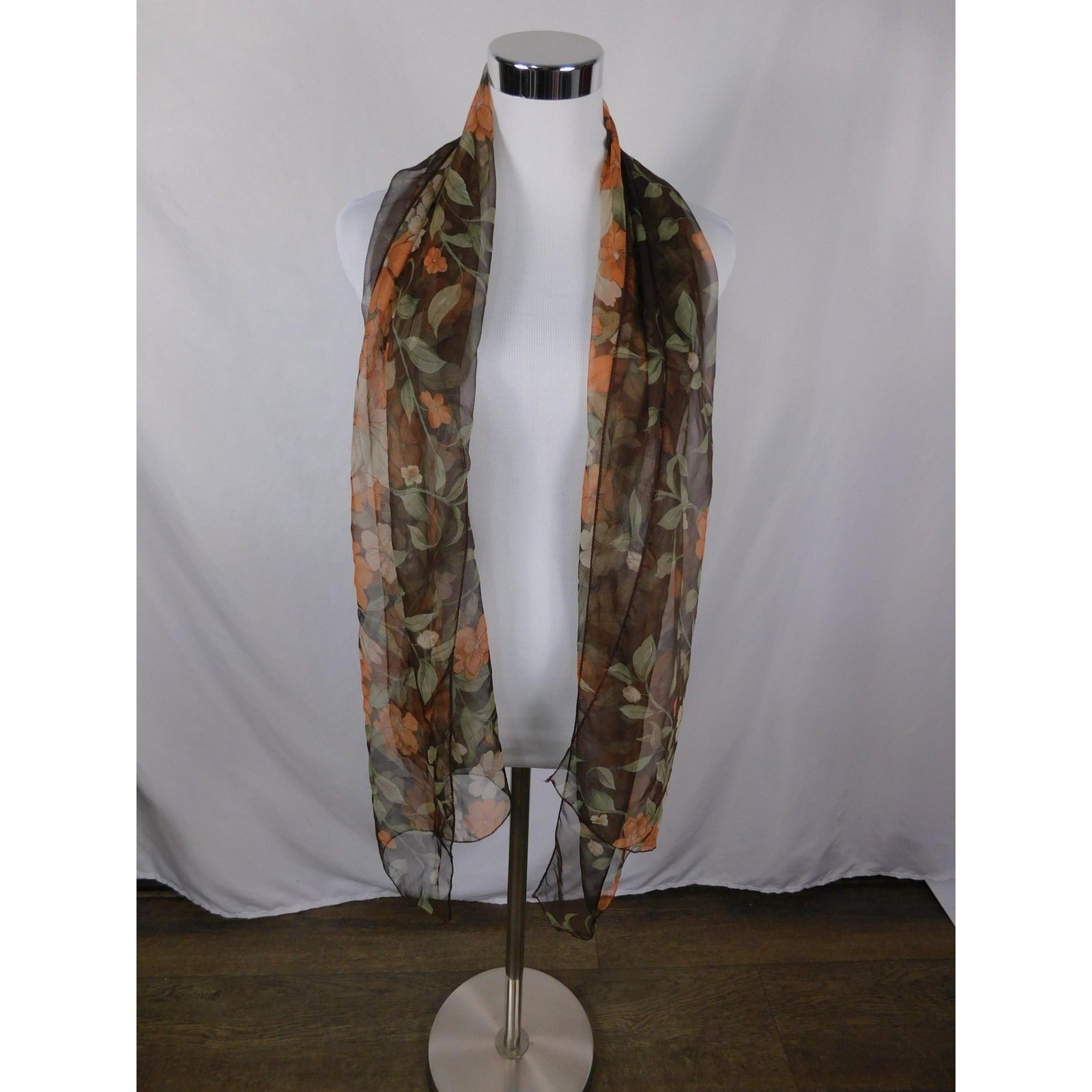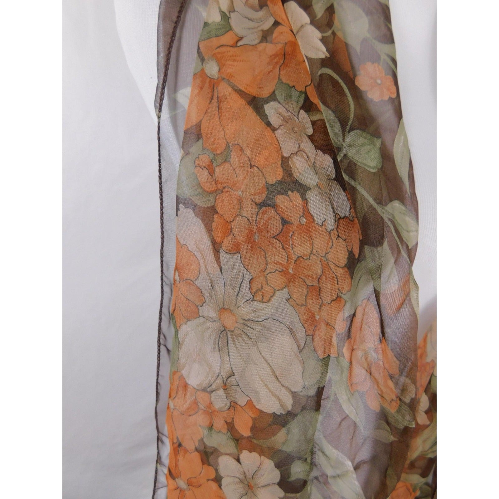 Unified Title "Brown Orange Floral Chiffon Scarf Sheer Boho OS