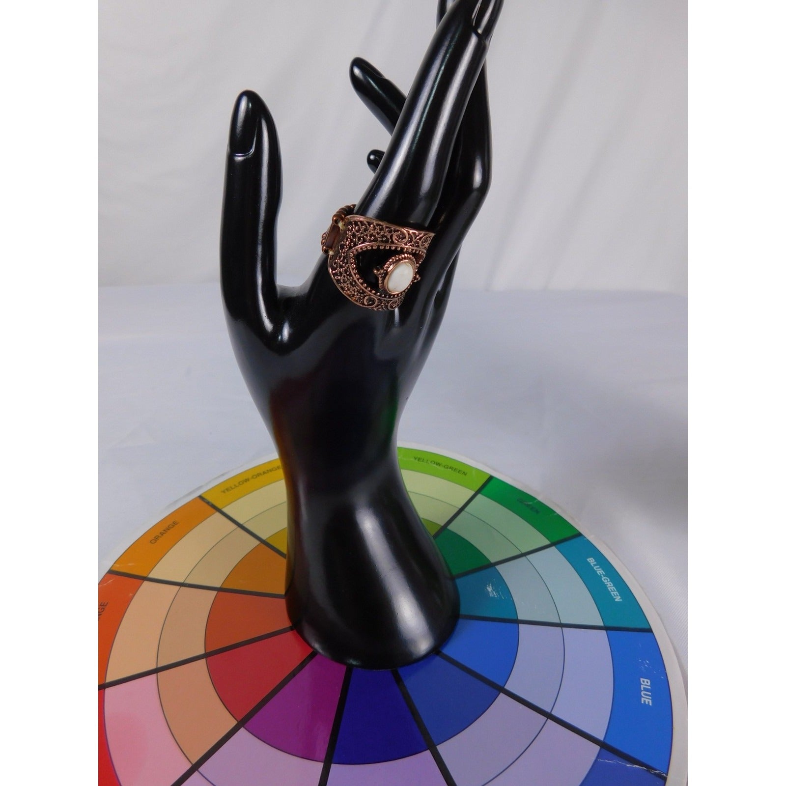 Vintage Copper Tone Filigree Stretch Ring Statement Costume Jewelry Oval White Stone