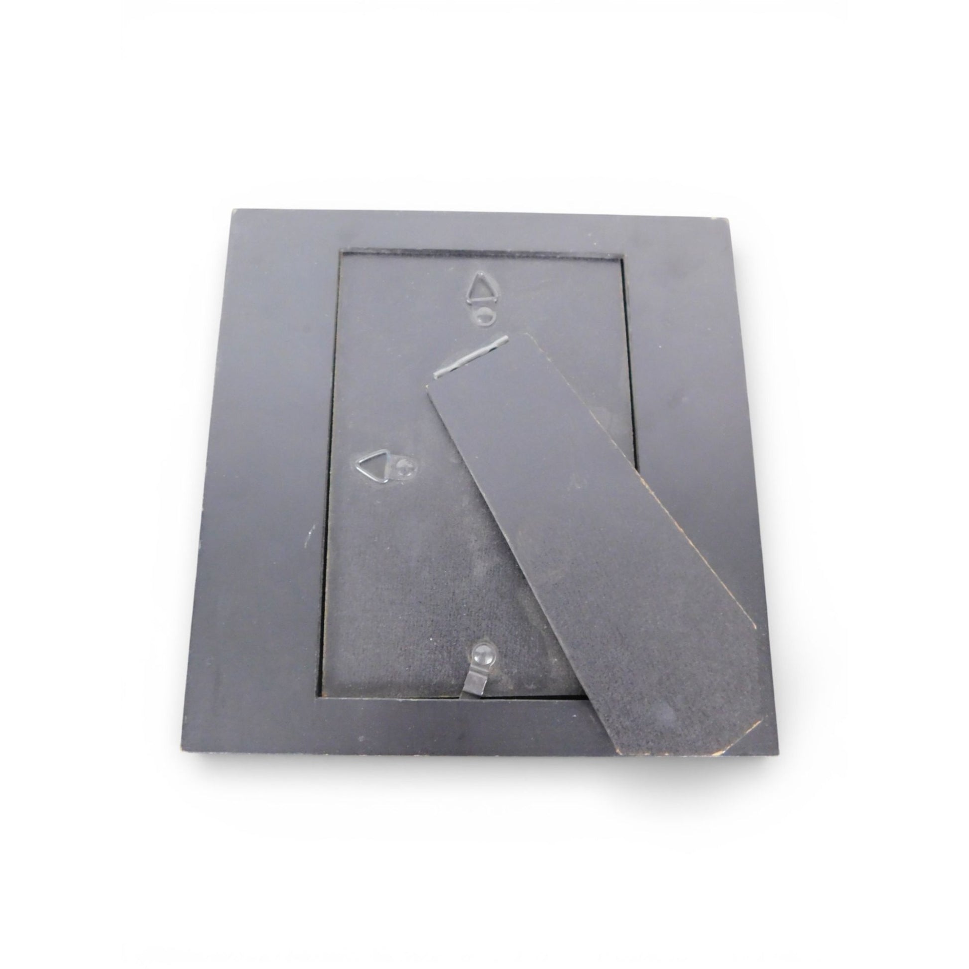 Good vintage condition. Artwork shows light handling marks and evidence of trimming along edges. Frame shows minor wear consistent with age. Glass has light surface marks visible under reflection. Easel stand intact and functional. Please review photos carefully for exact condition.