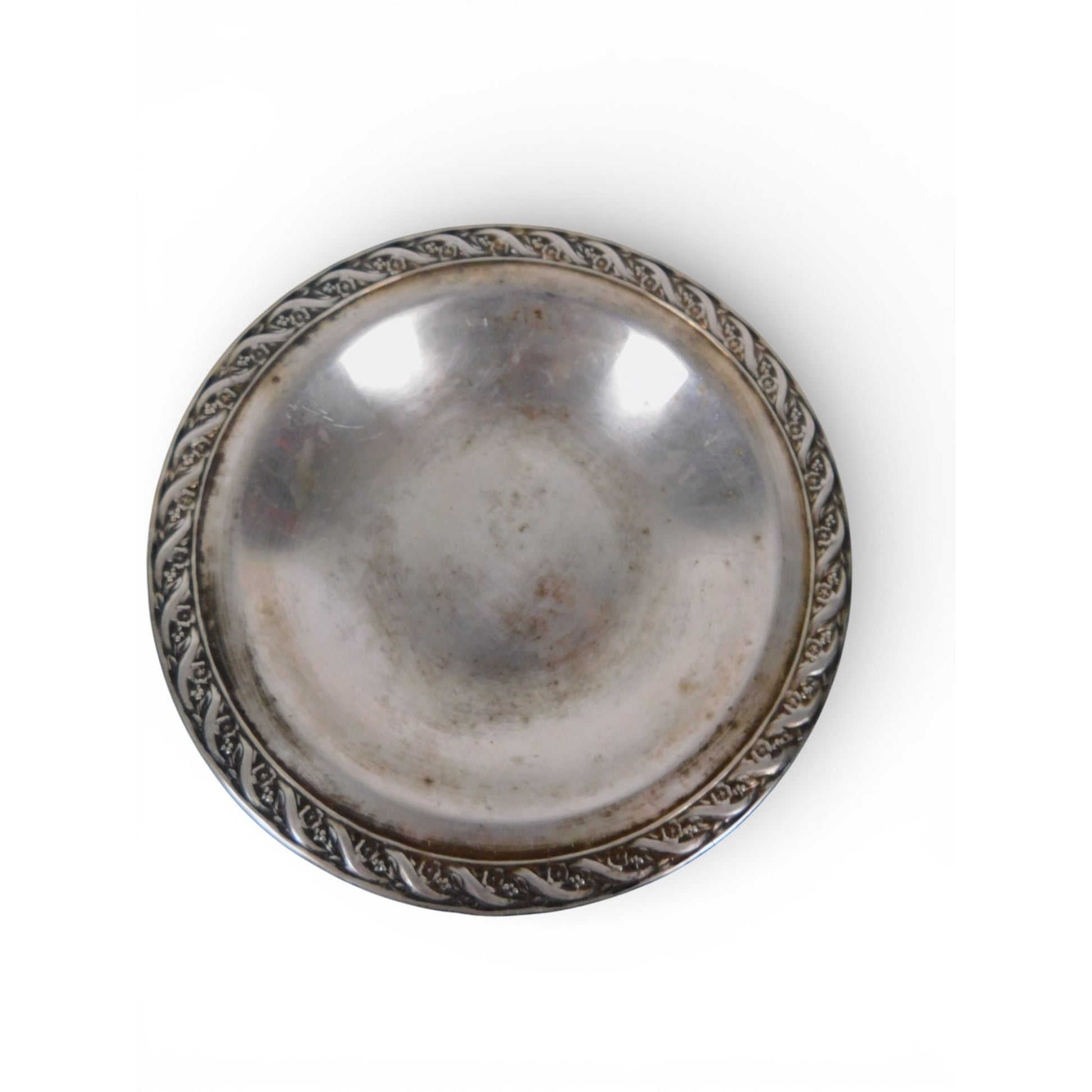 Vintage Silverplate Round Serving Bowl Floral Rope Edge 7.5”