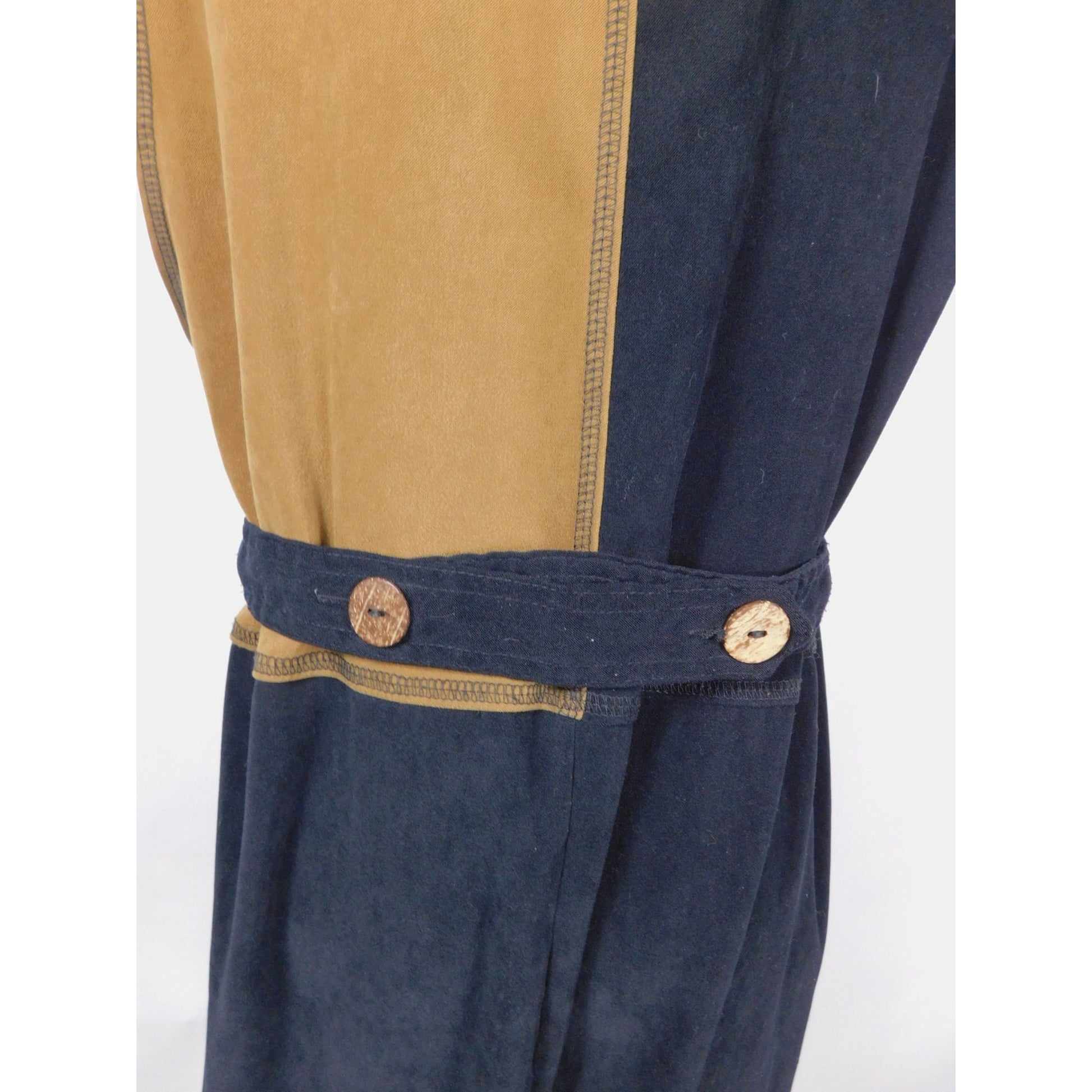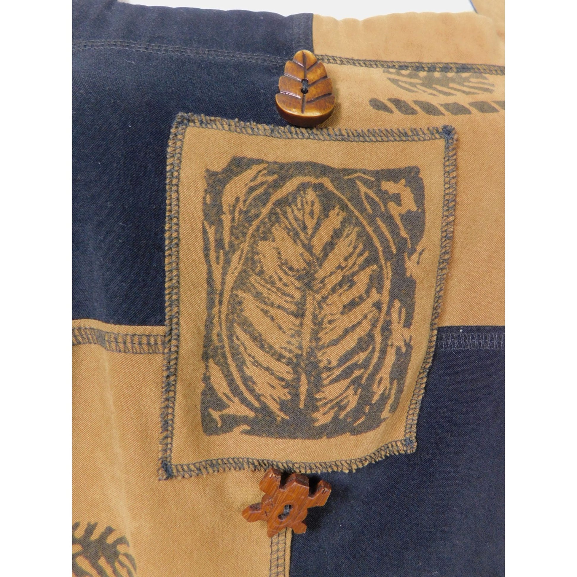 Step into 70s earth-mage glamour with this pre-owned Nina Piccalino USA-made maxi dress (fits women’s M) — dramatic black & camel patchwork blocks swirl with leaf prints, sleeveless square neckline, wooden button placket, adjustable back belt cinches the waist. 52" long, flowing skirt perfect for sabbat circles, forest rituals, or vintage witch gatherings.