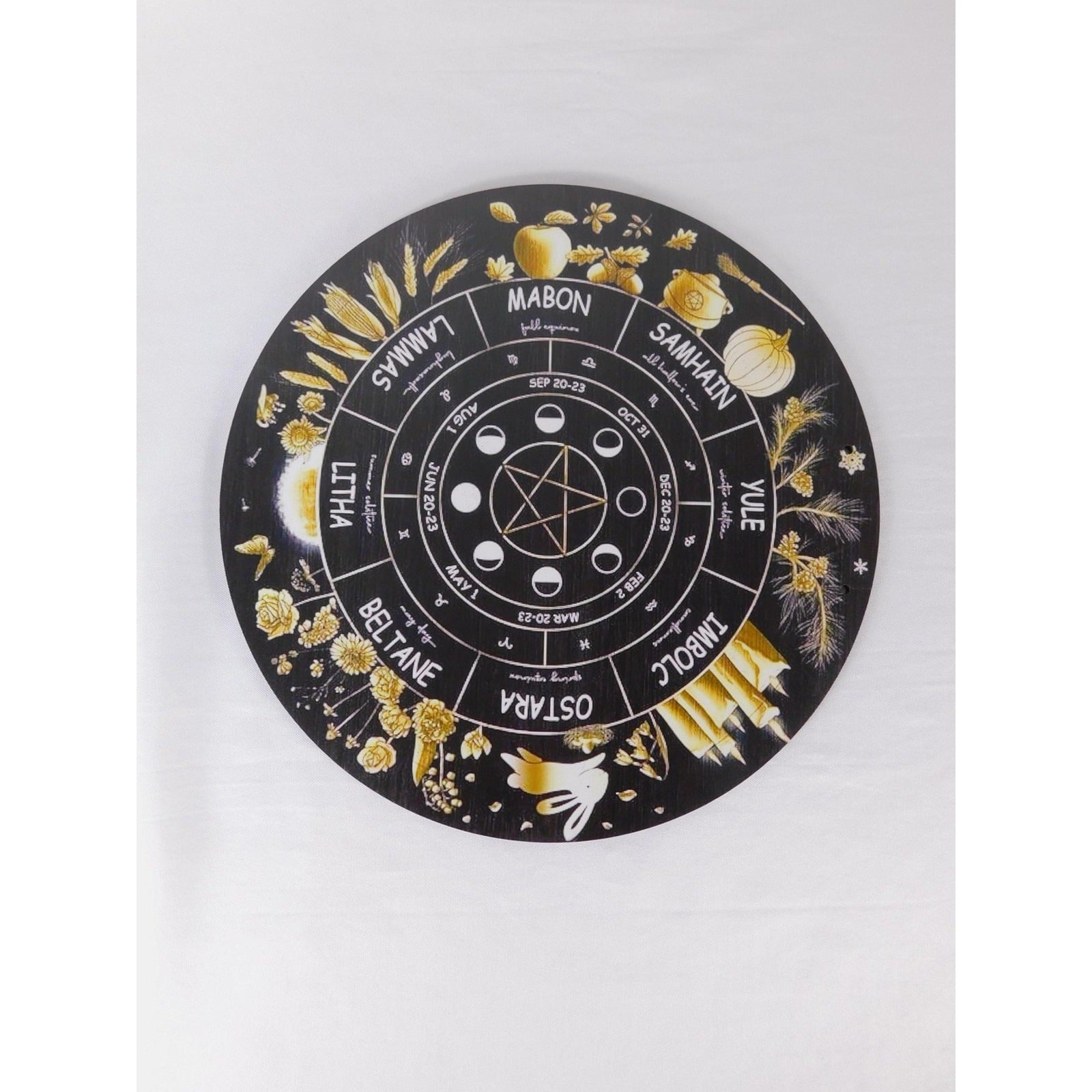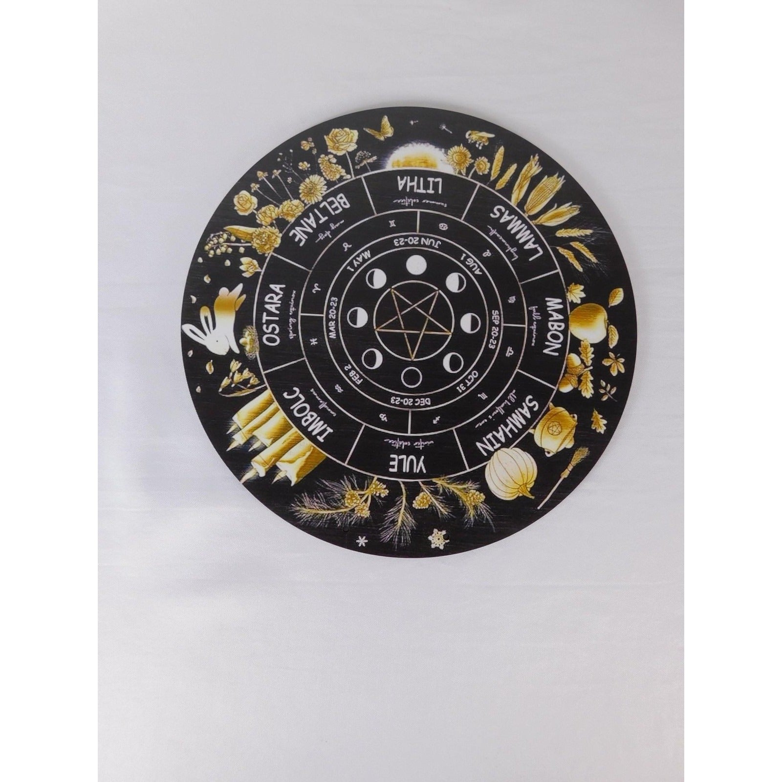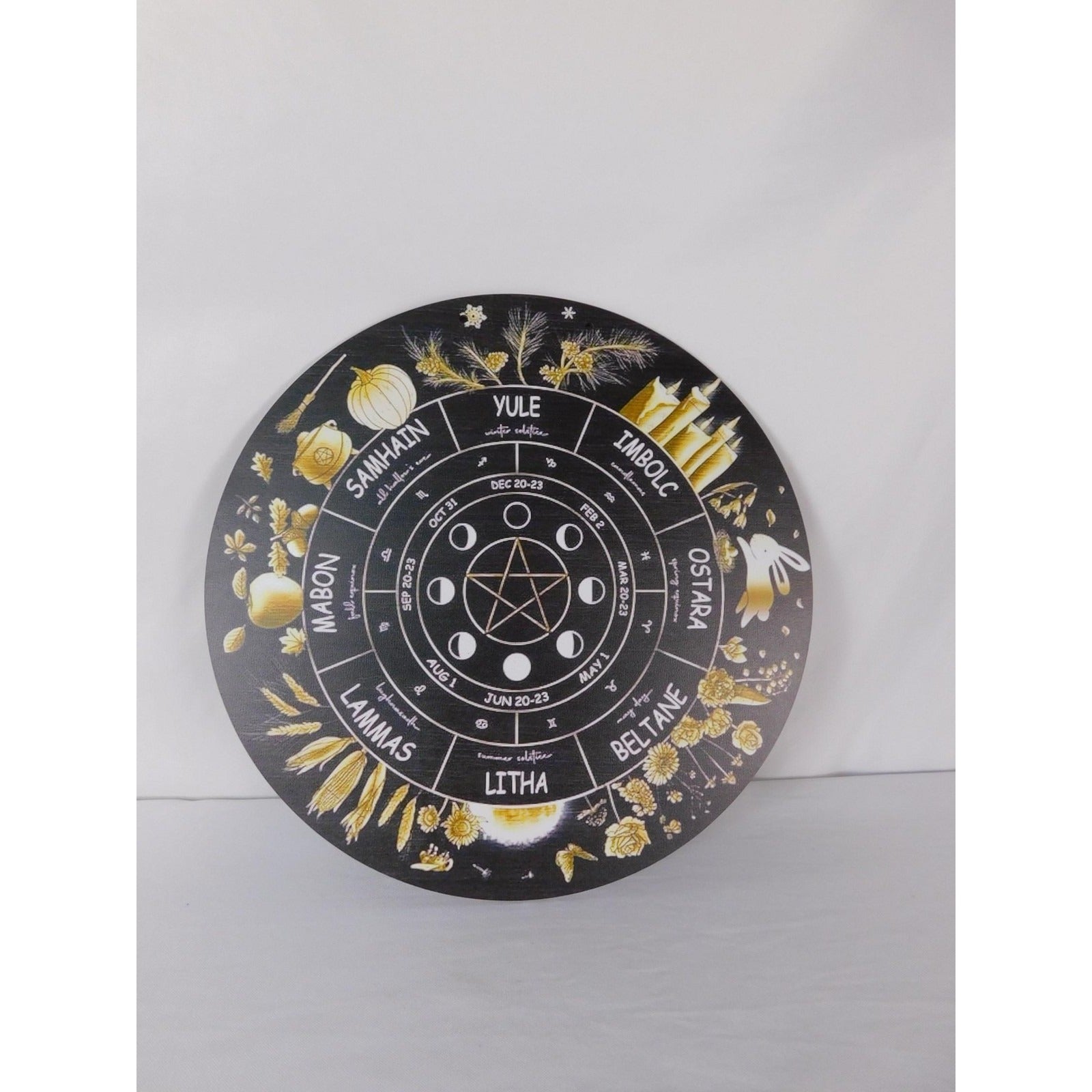 Keywords: wheel of the year wall art, sabbat calendar plaque, pentacle moon phases, Wicca altar decor, pagan witchcraft home decoration