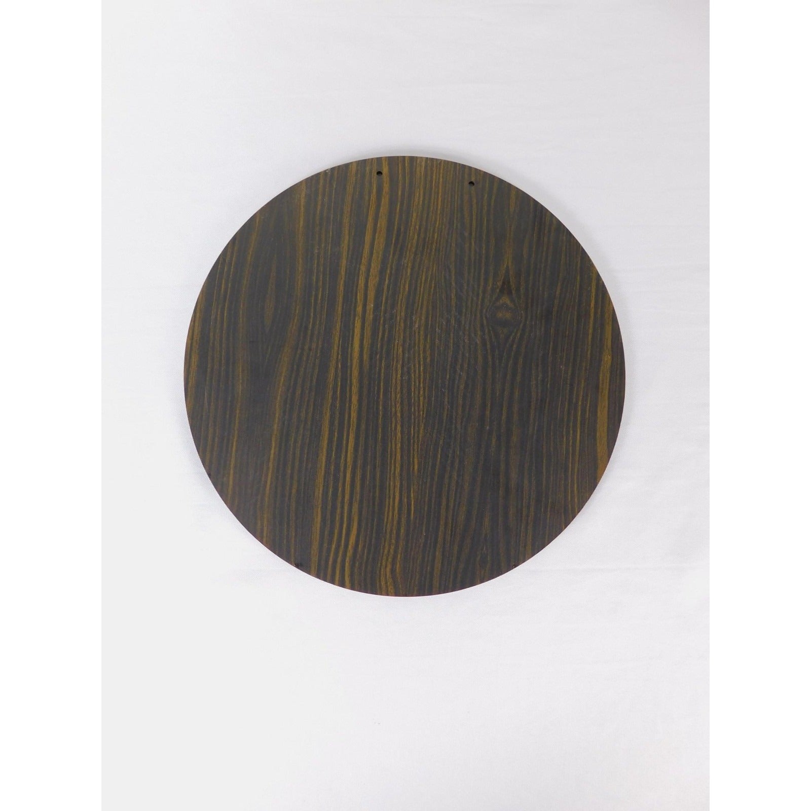 Material: Faux wood round plaque with printed design on the front and woodgrain finish on the back