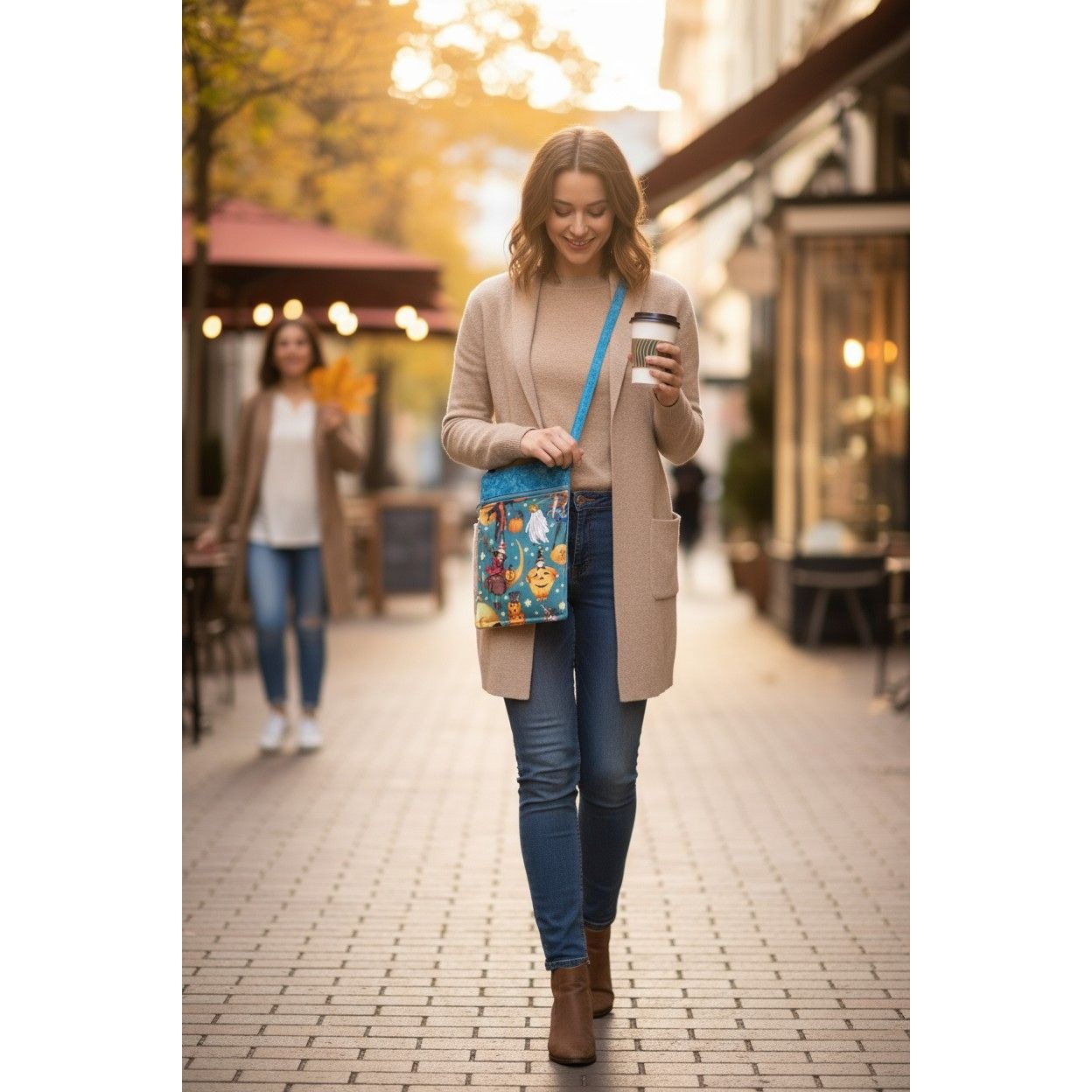 Witchy-Themed Handcrafted Crossbody Bag Zipper Closure Halloween