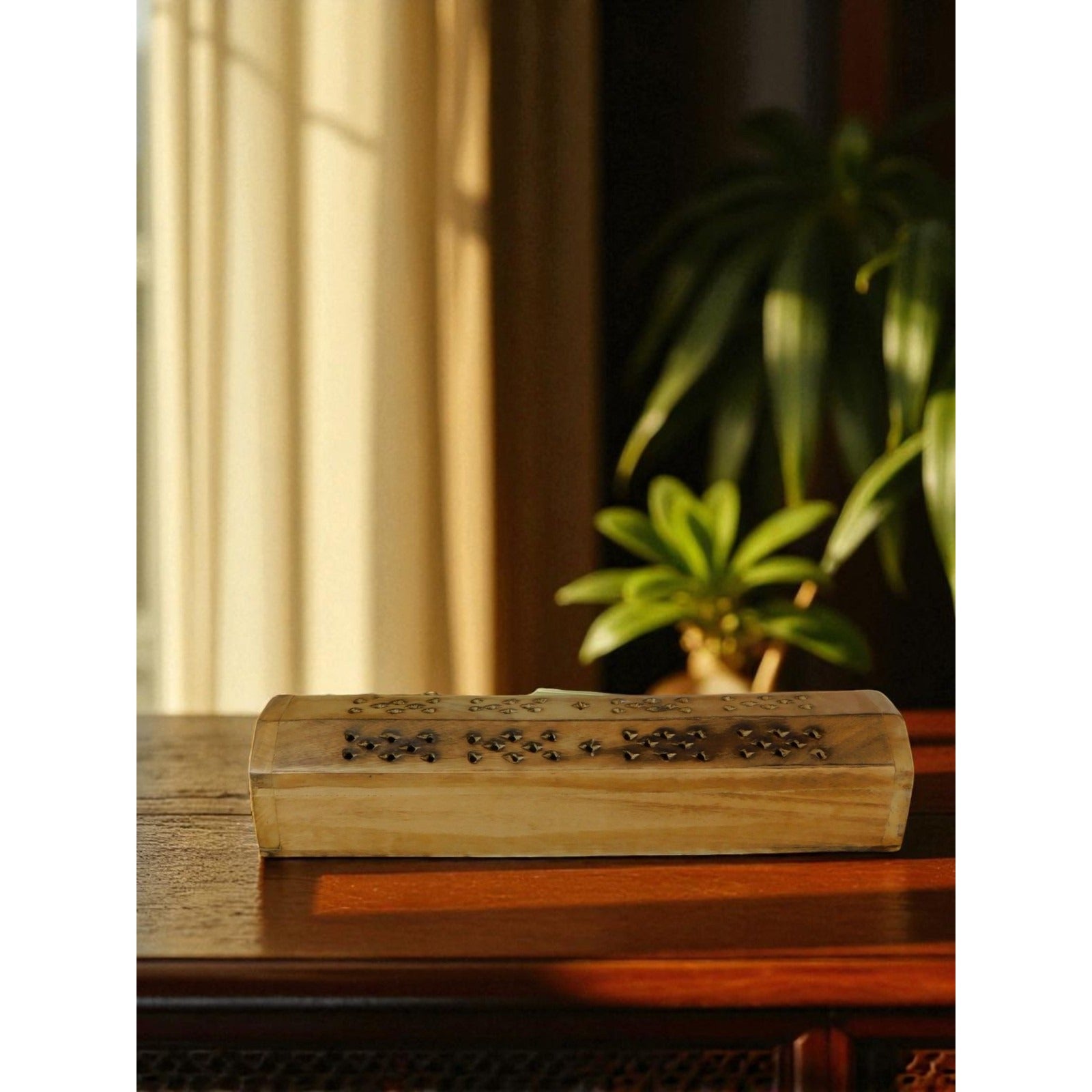 Handcrafted Wood Incense Holder Box Decorative Storage Burn Chamber Floral Detail