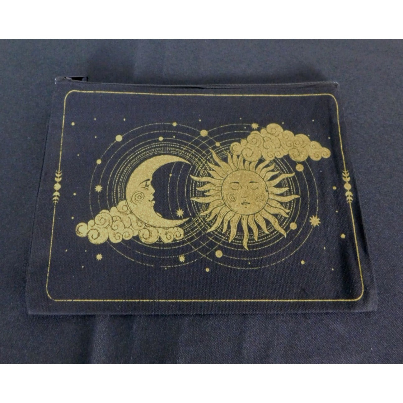 Zippered Black Canvas Pouch With Sun & Moon Design 9" X 7"