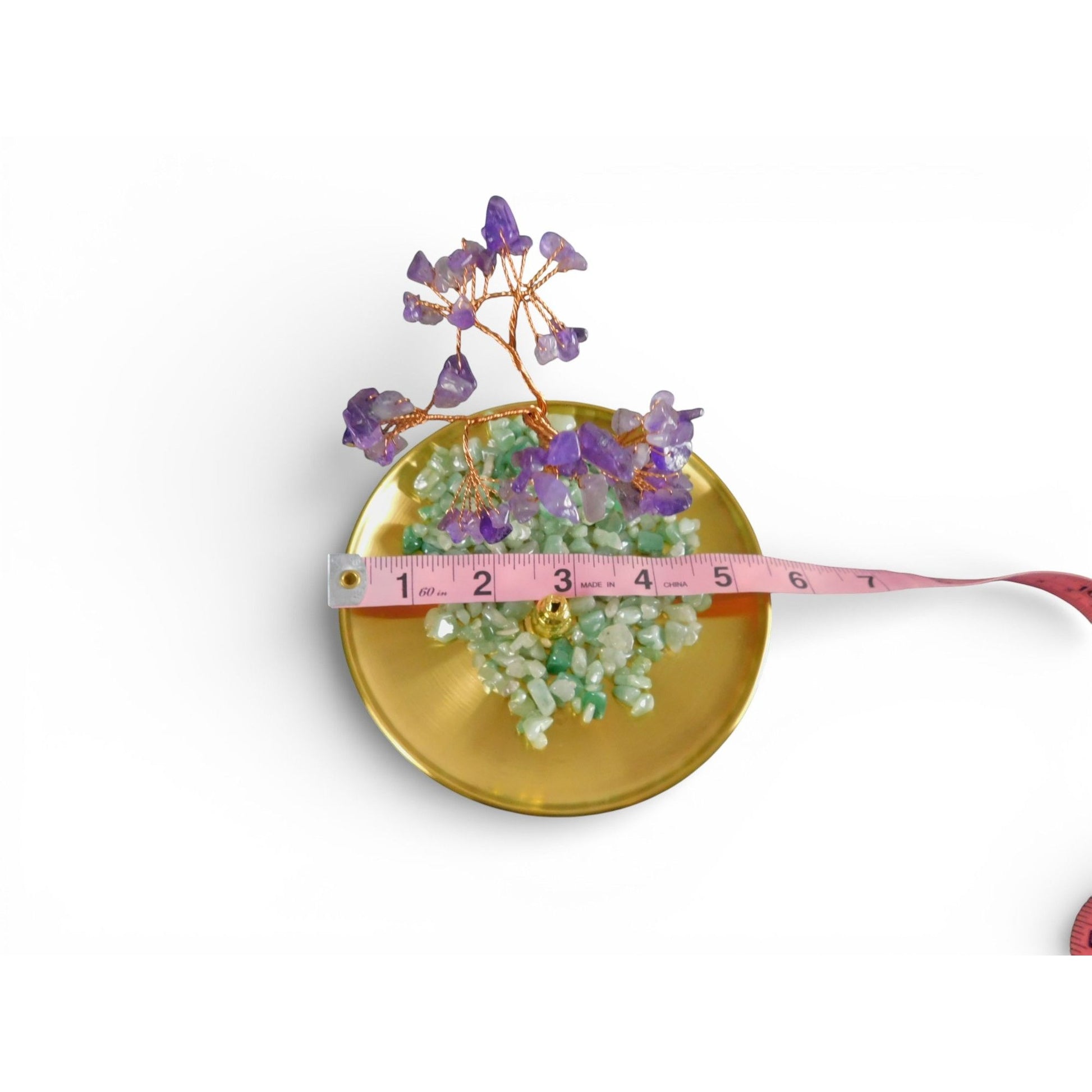 Amethyst & Green Aventurine Crystal Bonsai Tree On Gold Base 3.5" Diameter For Home Décor & Spiritual Energy
