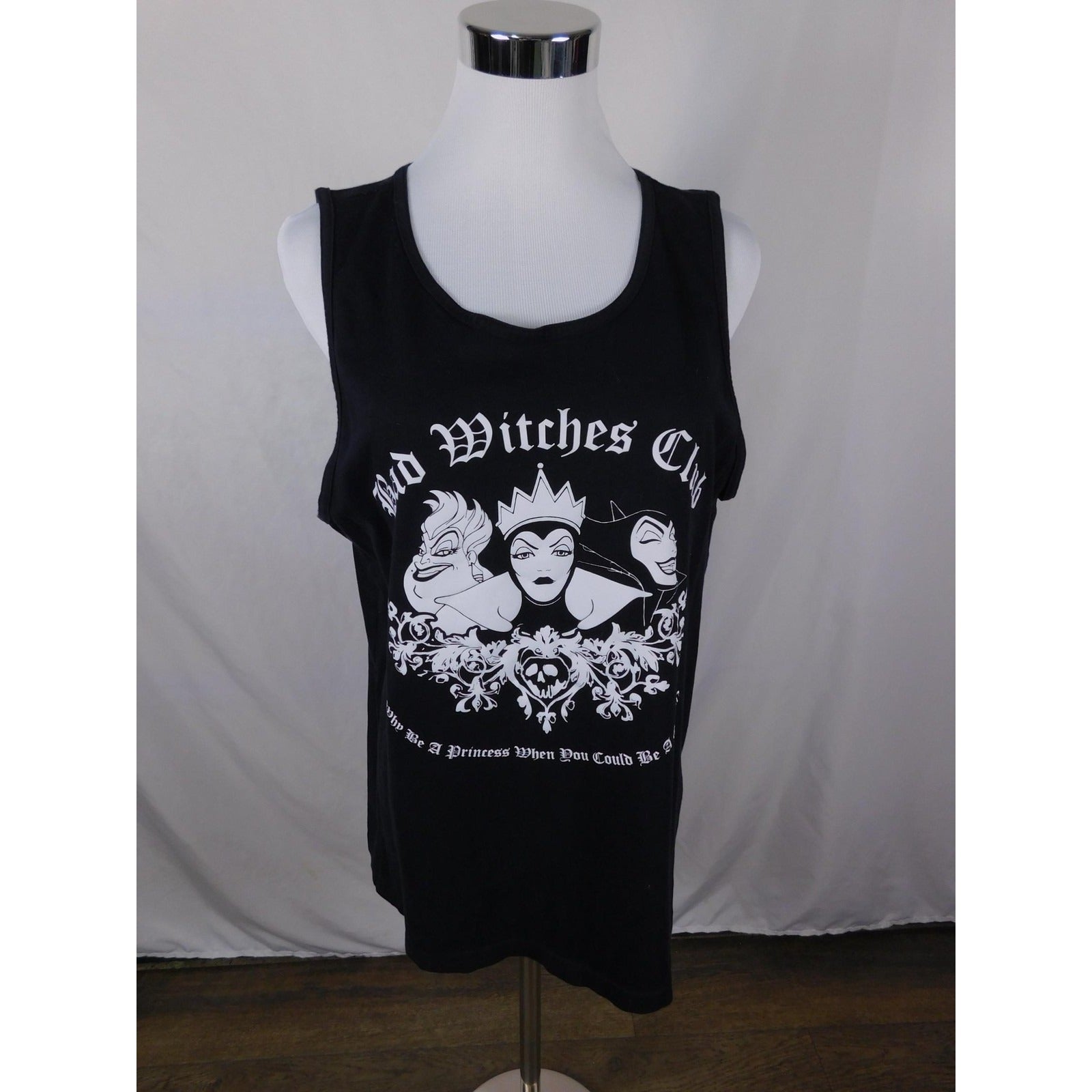Join the coven in this pre-owned Essentials women’s L slim-fit black tank (25" long, 18" pit-to-pit)—100% cotton knit, white screen-print spells “Bad Witches Club” above three witch silhouettes & “Why be a Princess when You Could Be a...” Crew neck, sleeveless; perfect Modern & Minimal layer or solo hex. Made in Vietnam. The Witches Quest curation.