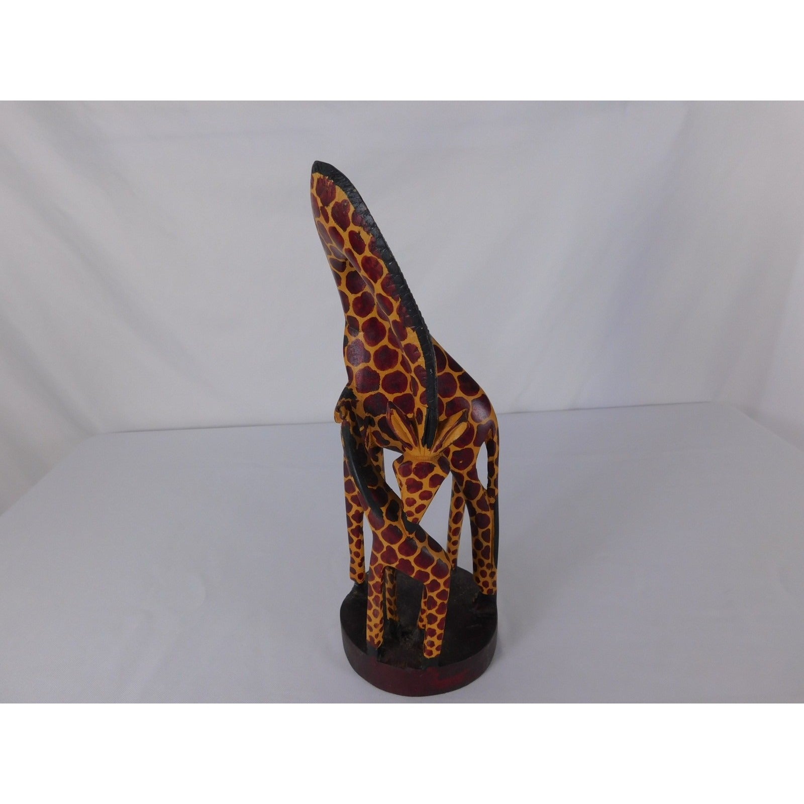 Brown Hand Carved Wooden Giraffe Figurine African Safari Wildlife Decor