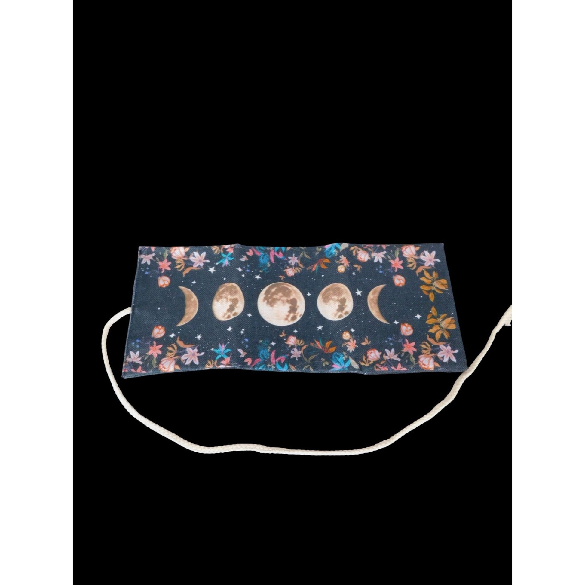 Guard your deck's magic with this brand new trifold cloth tarot card holder, featuring celestial moon phases and florals. Secure pocket + cord closure, durable fabric. Measures 15" x 6.5". Brand new, no flaws. Perfect for spiritual explorers. Ships swiftly from The Witch’s Quest. Explore more altar essentials at thewitchesquest.com