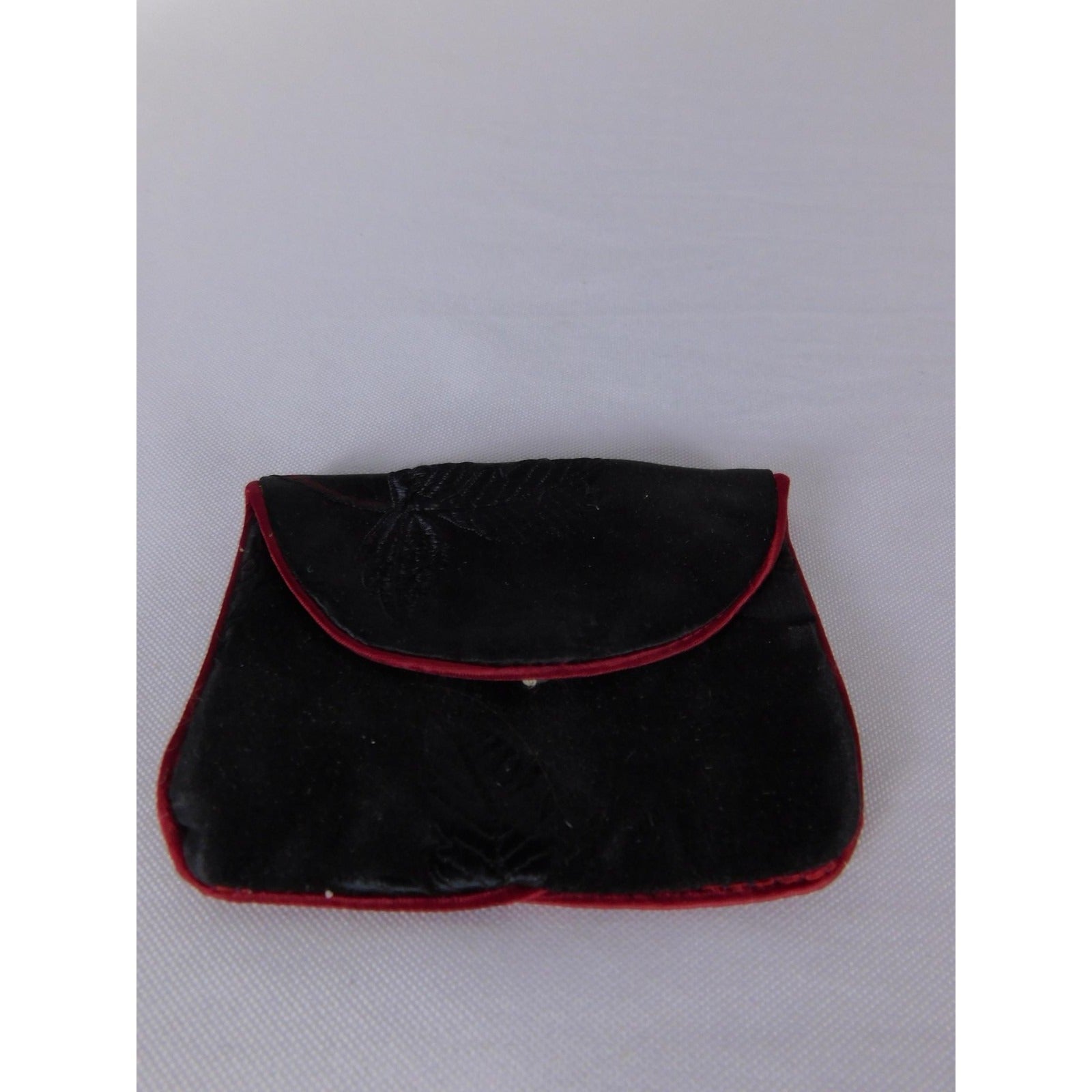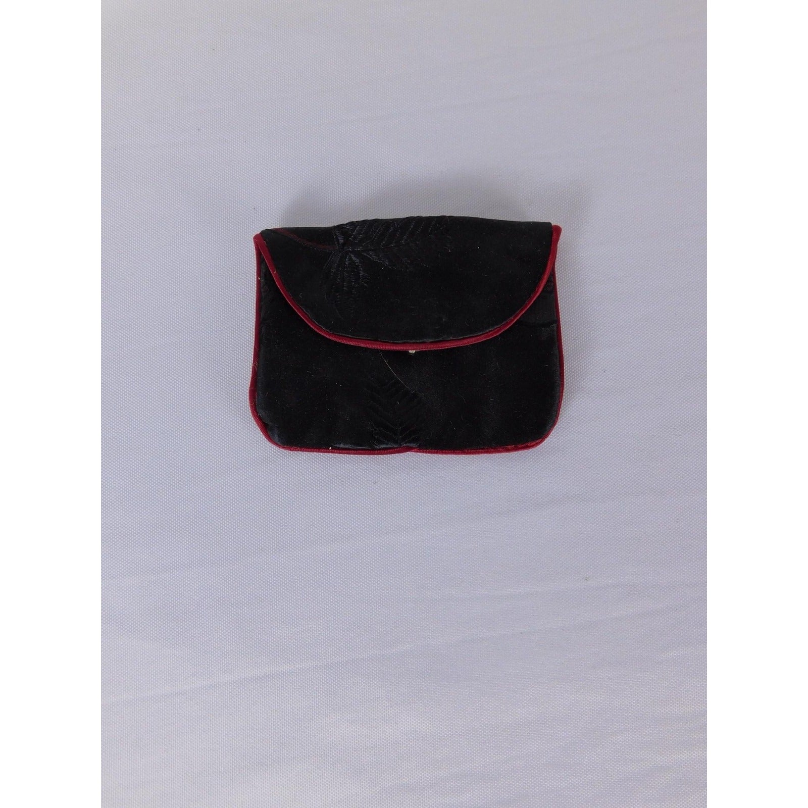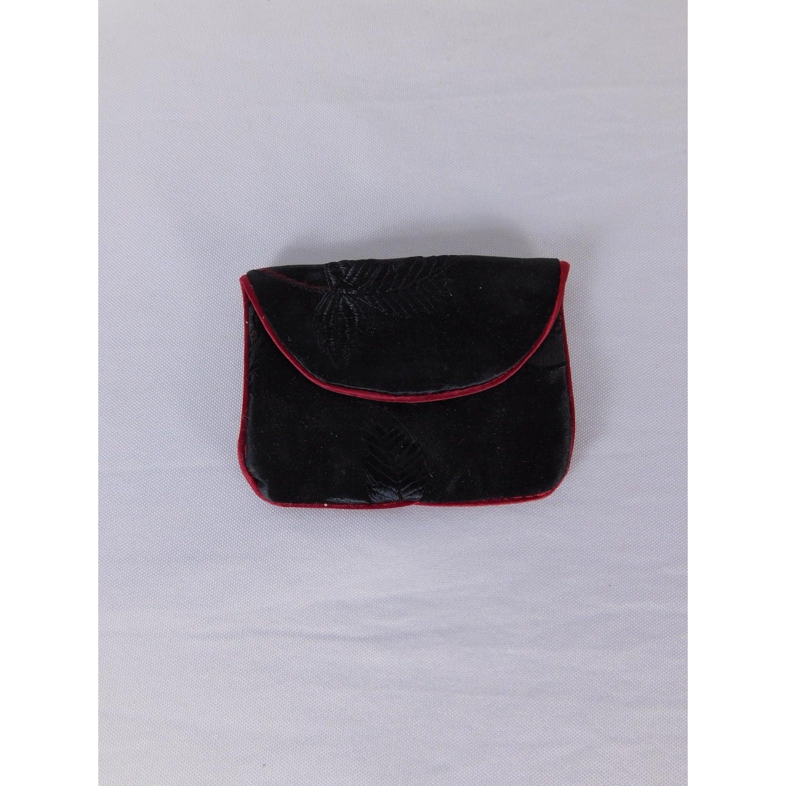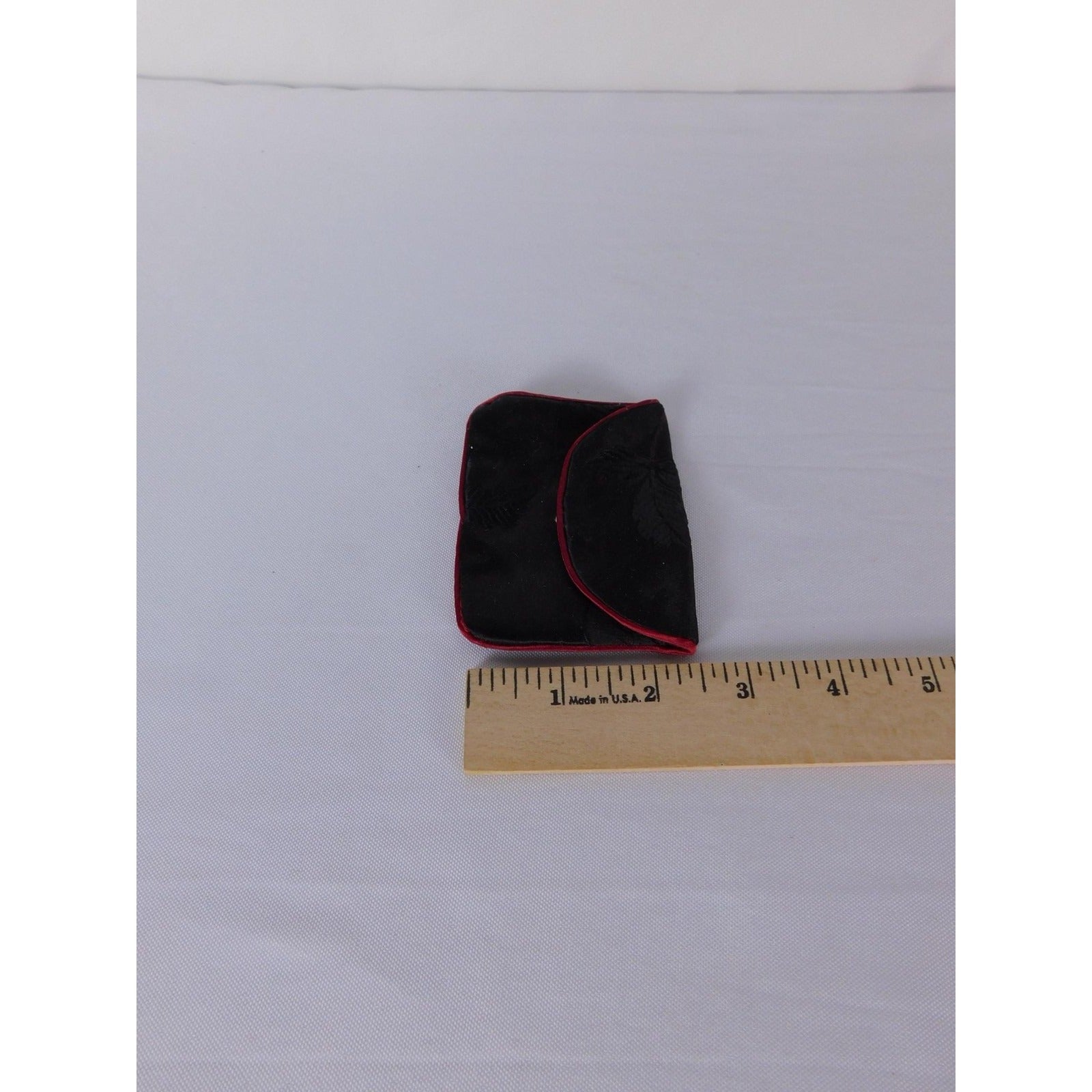 Coin Wallet Purse Womens One Size Compact Black Velvet Floral Pouch Red Trim