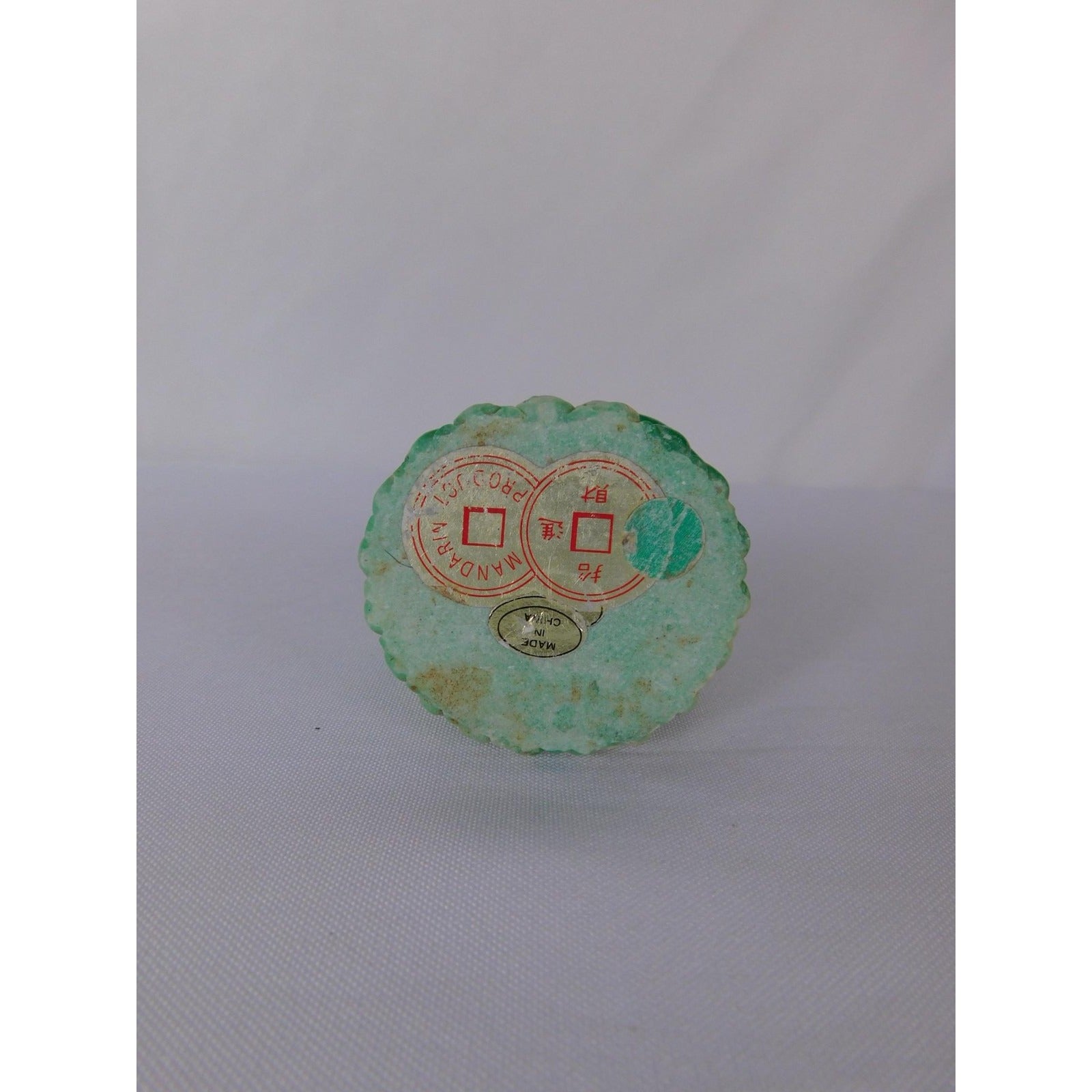 Round paper label on the underside shows a red printed double-circle design with Chinese characters.