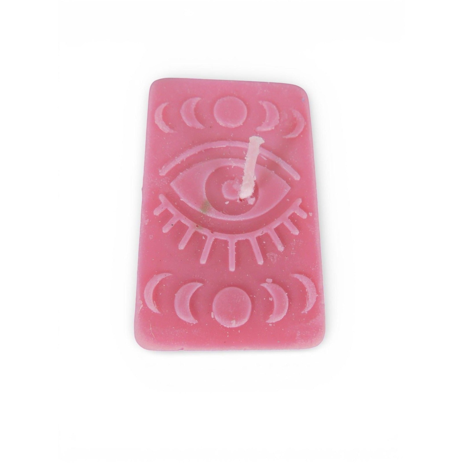 Handmade Pink Rectangle Eye Moon Phase Candle Small Mystical Wax Decor Witch