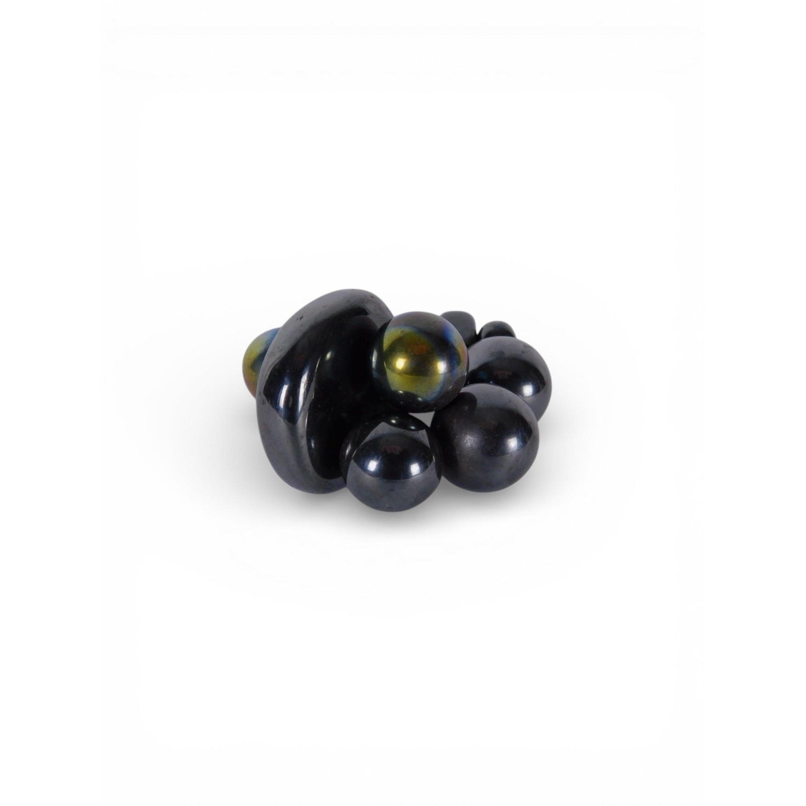 Beautiful hematite beads featuring a striking rainbow “oil slick” iridescent finish. These polished beads display shifting tones of purple, green, gold, and blue depending on the light.