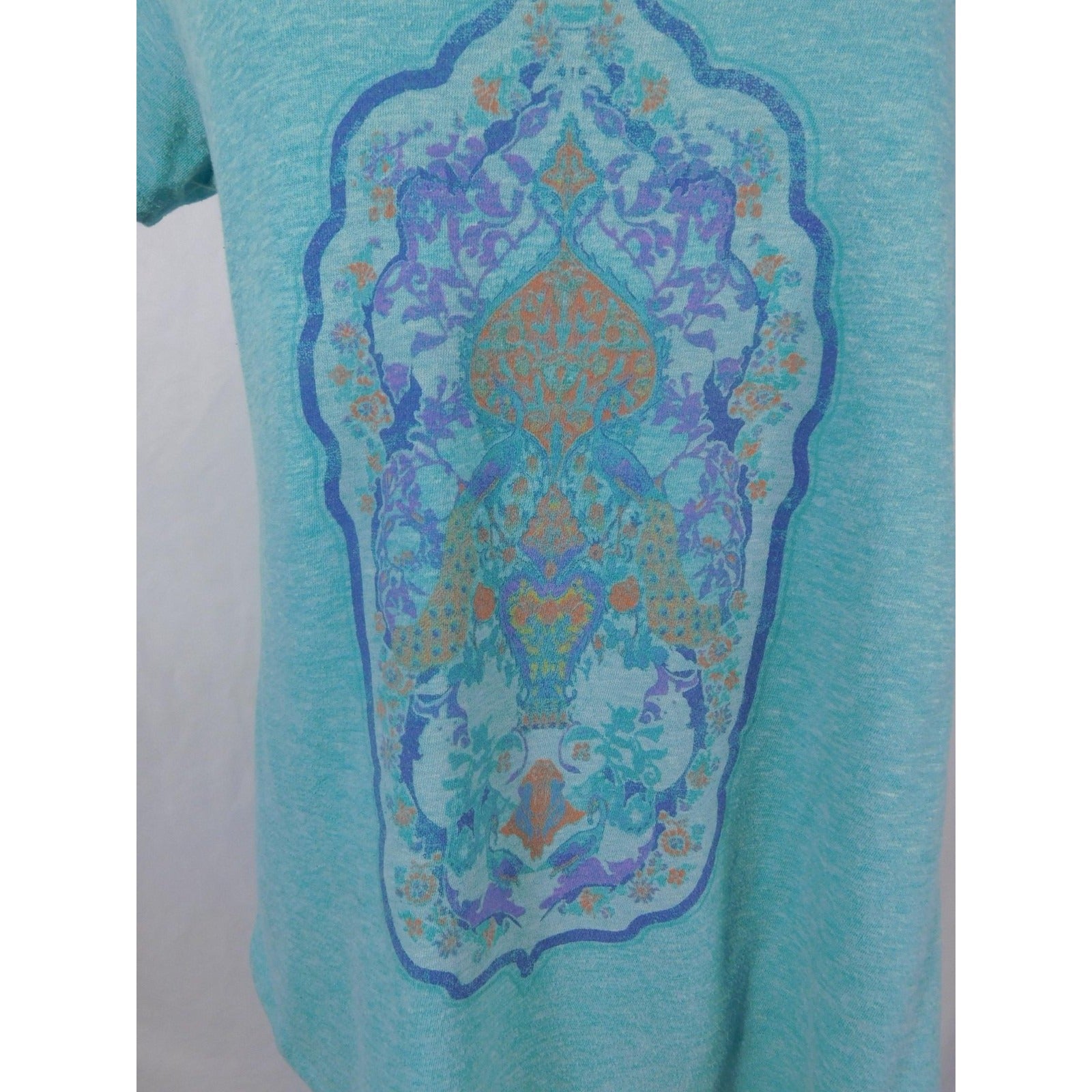 Lucky Brand Teal Medallion Graphic Tee Boho Witch M
