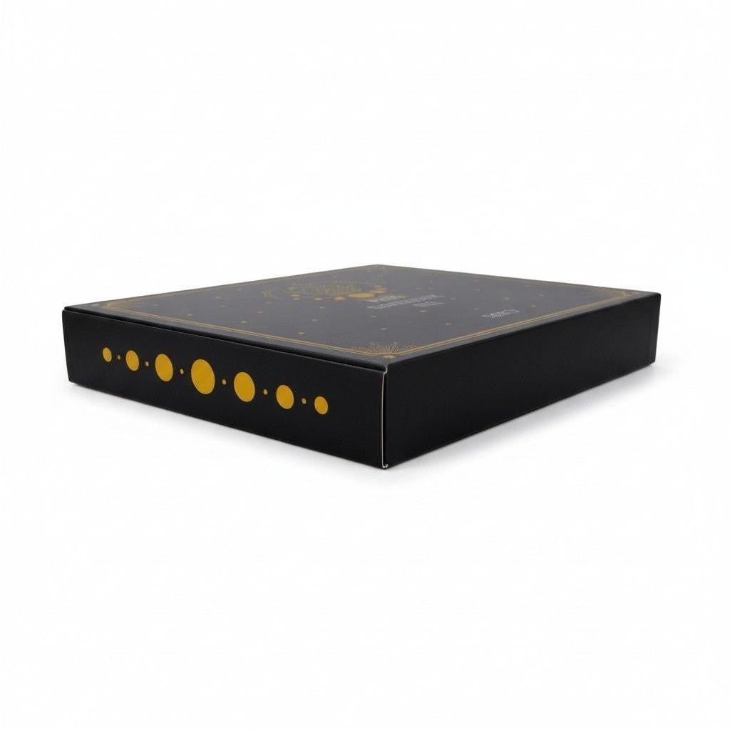• Color Palette: Black and gold box design, assorted multicolor stones inside