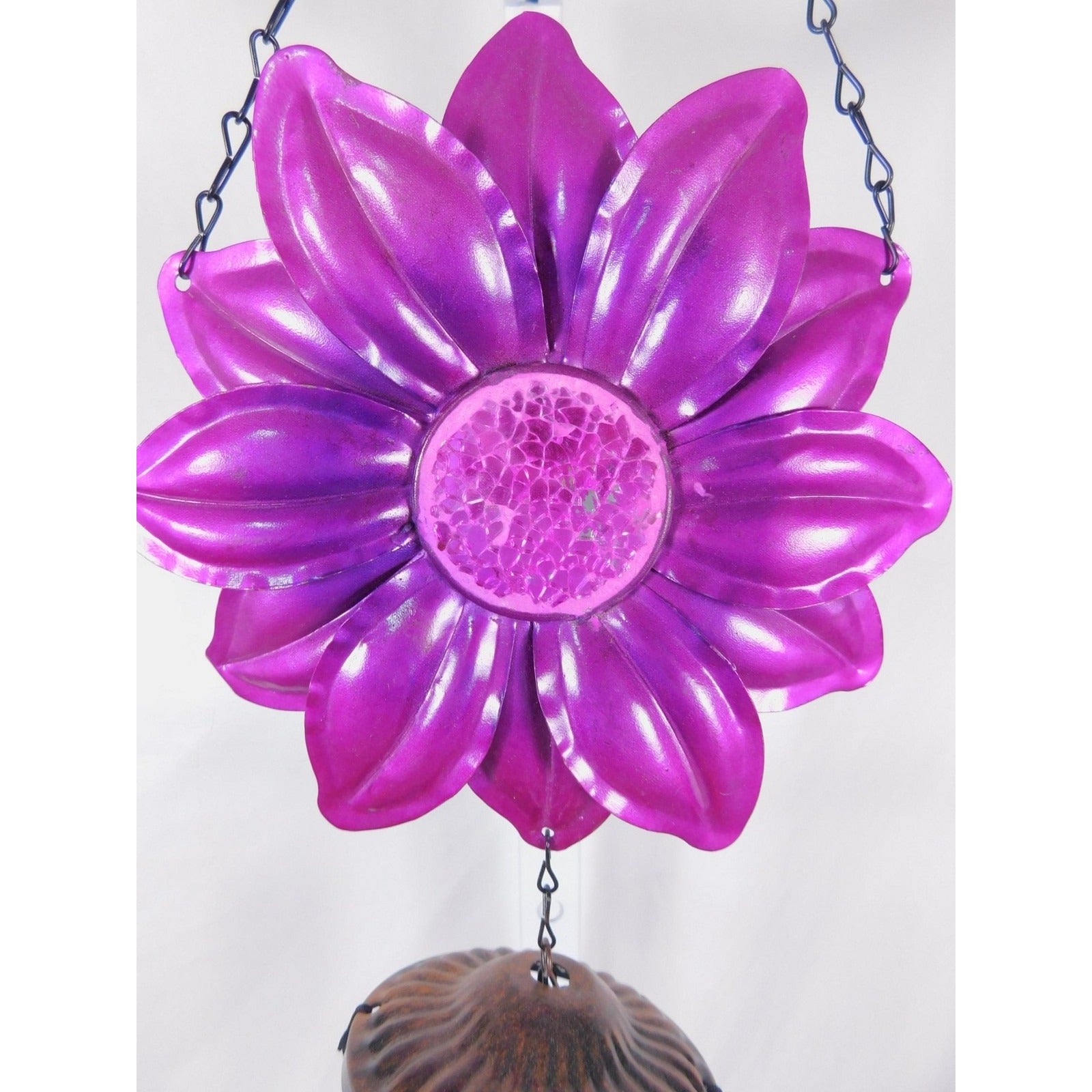 Colorway: Purple flower, bronze/rust-finish top canopy, copper-tone tubes, green leaf, black chain/clapper.
