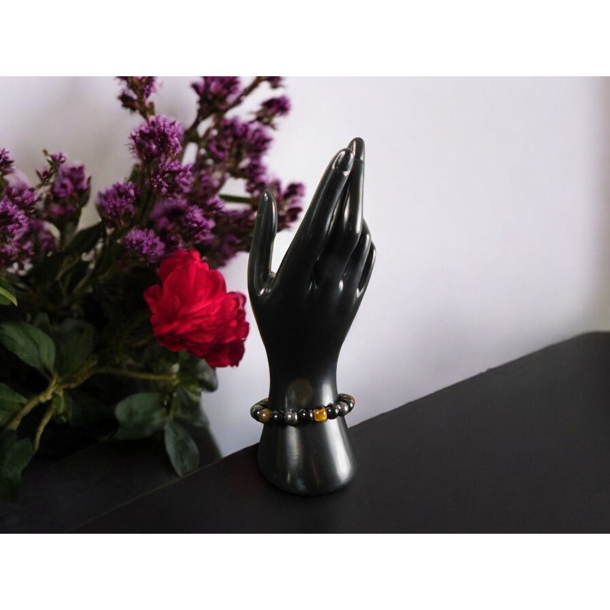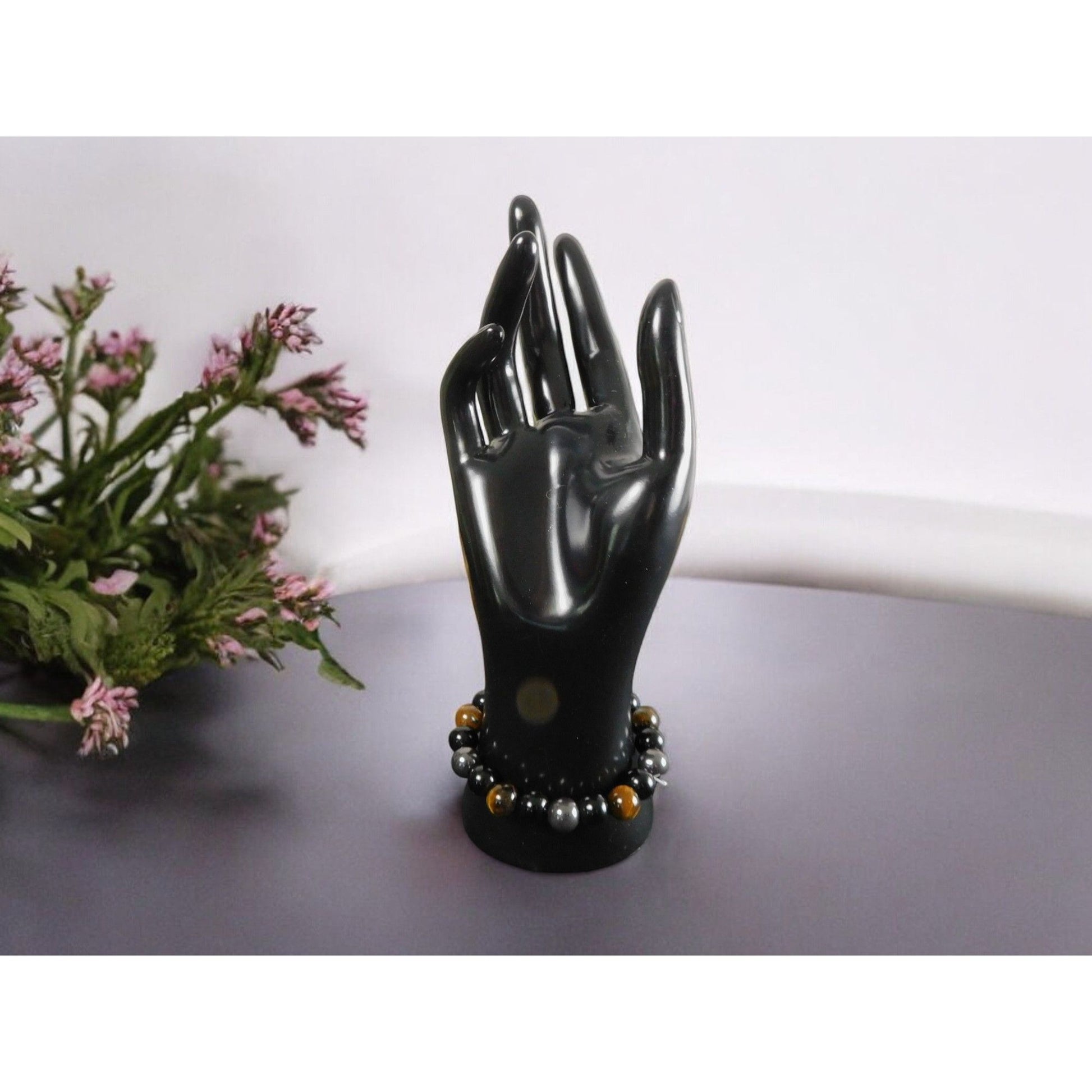 • Features Hematite, Black Obsidian, and Tiger Eye