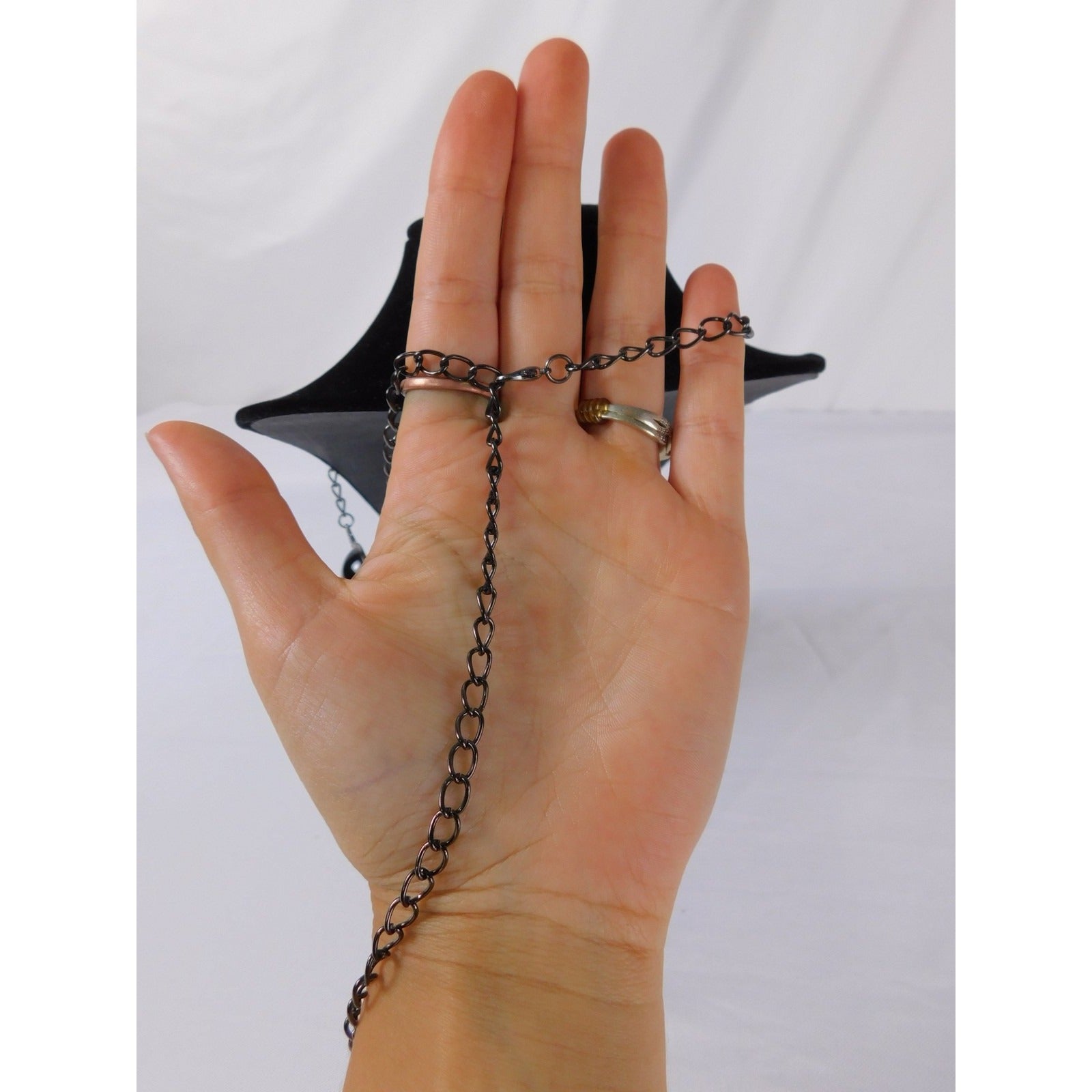 Vintage Black Gunmetal Half Circle Pendant Necklace Statement Chain MS Marked