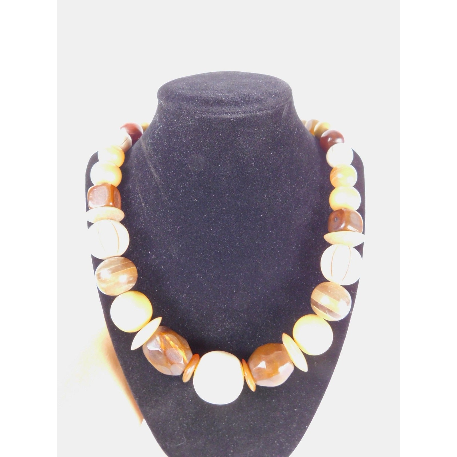 Vintage Chunky Bead Necklace Brown Cream Gold Oversized Statement Retro Jewelry